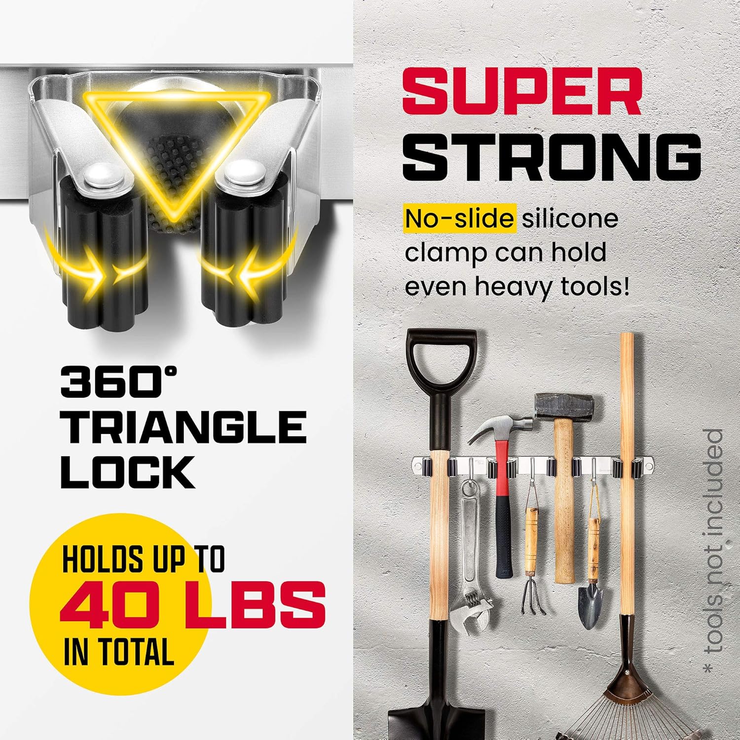 - SWEEPS THE COMPETITION – Most organizers cut corners with weak plastic materials that break and drop. That’s why our broom holder for garage boast stainless steel frames and strong silicone clamps for a superior hold!