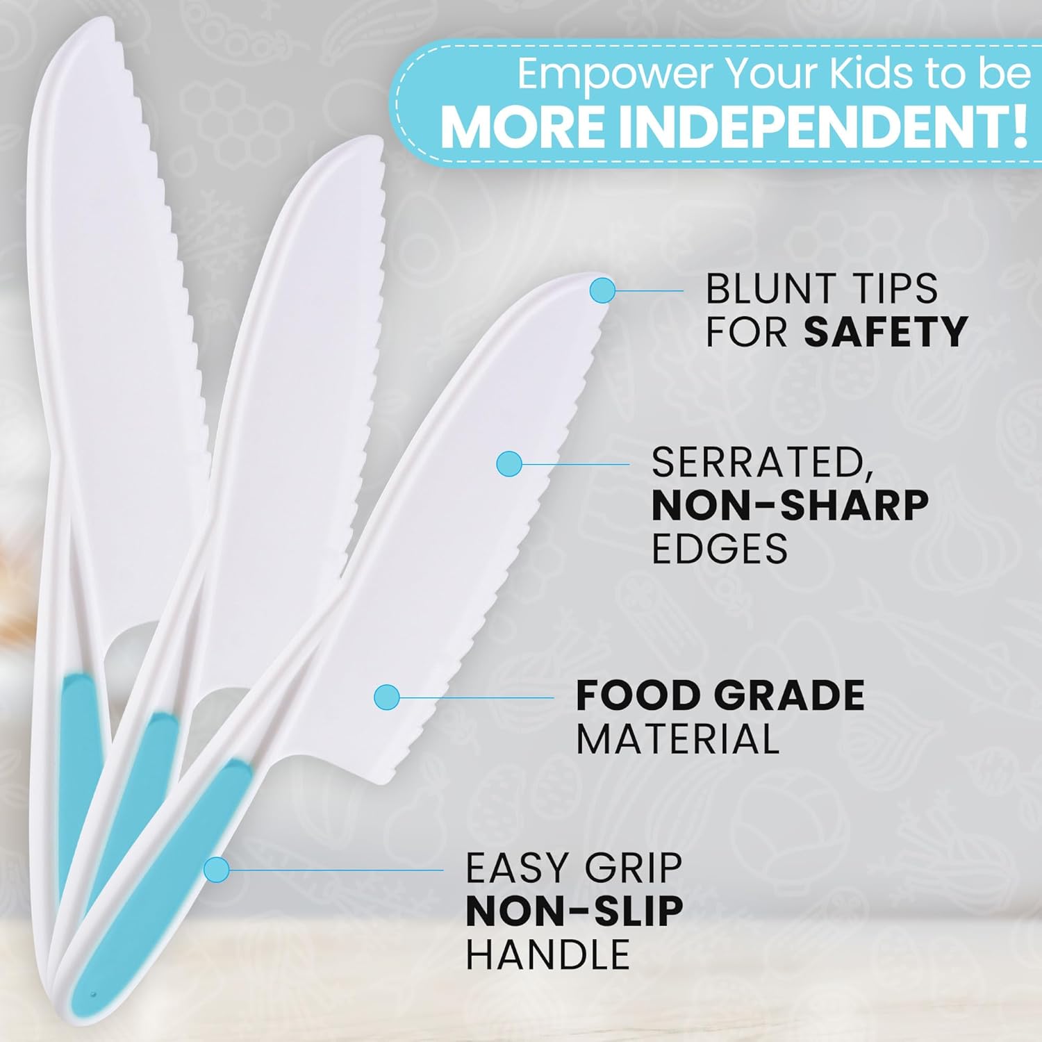 Zulay 3-Piece Kids Knife Set for Real Cooking & Baking - Toddler Knives for Cutting Fruits, Veggies, & Cake - Children’s Montessori Knife with Serrated Edges - Safe & Fun Lettuce Knife (Blue)