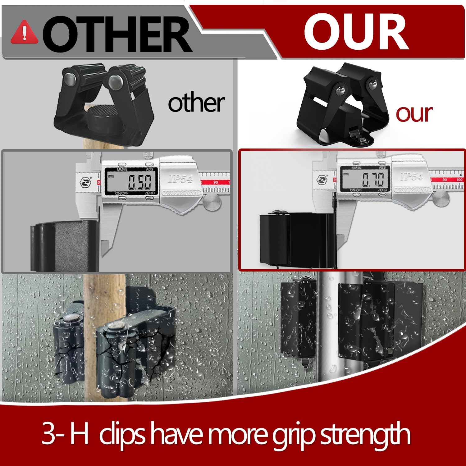 - EASY TO USE: Because mop broom holder wall mounted is made of 0.7mm thick metal material instead of 0.5mm as most of the ones on the market, you don’t have to worry about deformation even if you use it indoors or outdoors for a long time.You can slide the broom in and out with one hand. Unlike plastic mop holders with spring-loaded rollers, this broom organizer wall mount has rubber rollers to hold the handles, allowing the handle to slide in from the front and be held firmly in place.