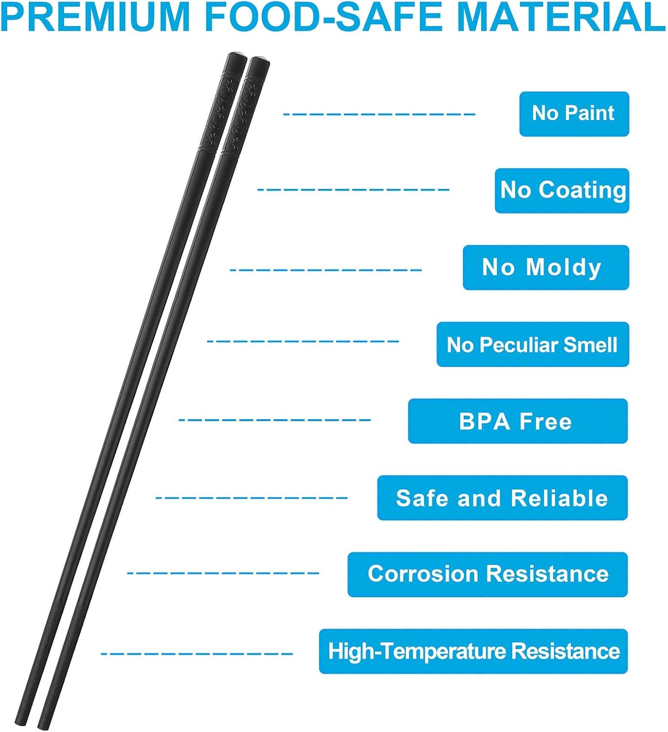 • FOOD-SAFE MATENAL: Our chopsticks are made of new generation high-quality heat-resistant fiberglass material, BPA-Free, no coating, no paint, durable and healthy for everyday use. Stand up to 392℉ (200℃) degrees, they won’t bend, melt, or crack.
