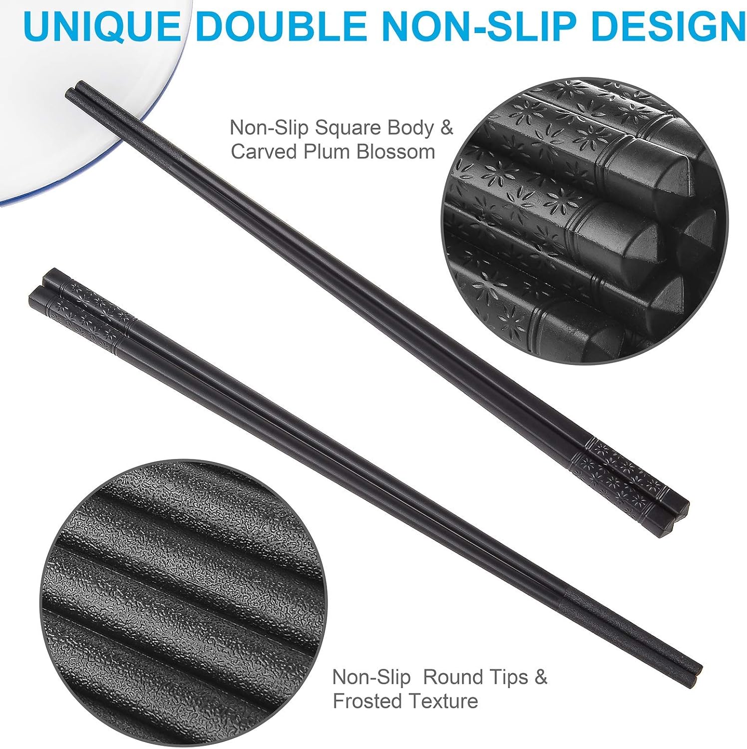• UNIQUE DOUBLE NON-SLIP DESIGN: Our chopsticks have non-slip tips and anti-rolling squared body, this design can prevent the chopsticks from rolling through your fingertips and table, making it easier to hold, even for first-time users, and the elongated, pointy, non-slip, frosted texture prevents food from falling off between your chopsticks.