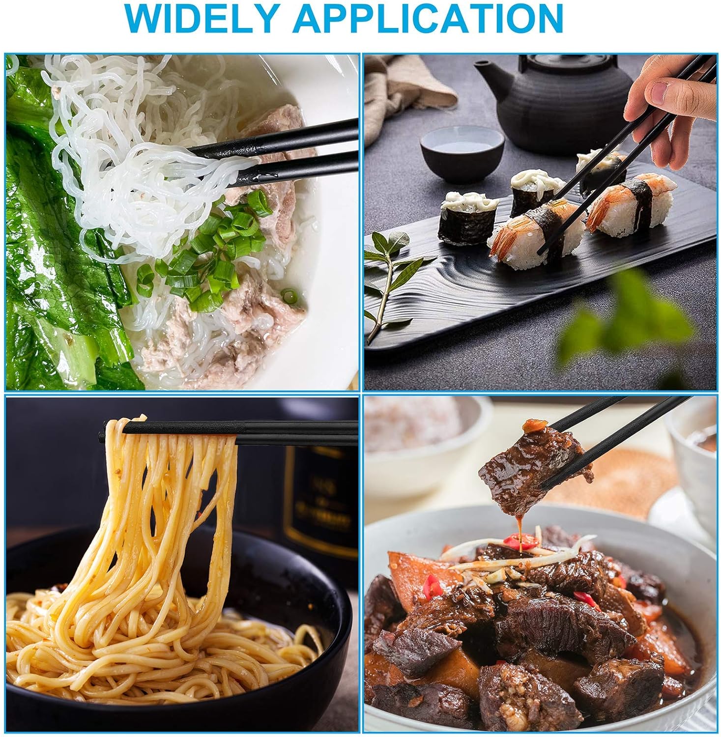 • WIDELY APPLICATION: Our chopsticks are suitable for home, hotel, restaurant, travel. These are a must have item for eating typical Asian foods, such as sushi, noodles, hot pot, dumplings, etc. Of course, you can also use them to make daily food like spaghetti.