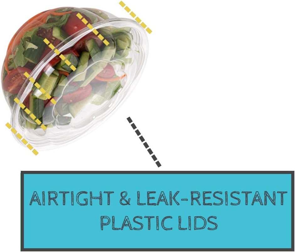 Smygoods Disposable Plastic Salad Bowls with Airtight Lids Ideal for Meal Prep, Takeout, Catering, Parties, Picnics, and Food Storage, Stackable, Leak-Proof