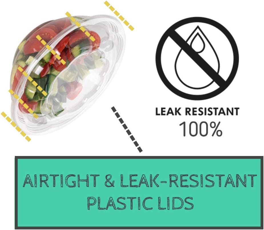 Smygoods Disposable Plastic Salad Bowls with Airtight Lids Ideal for Meal Prep, Takeout, Catering, Parties, Picnics, and Food Storage, Stackable, Leak-Proof