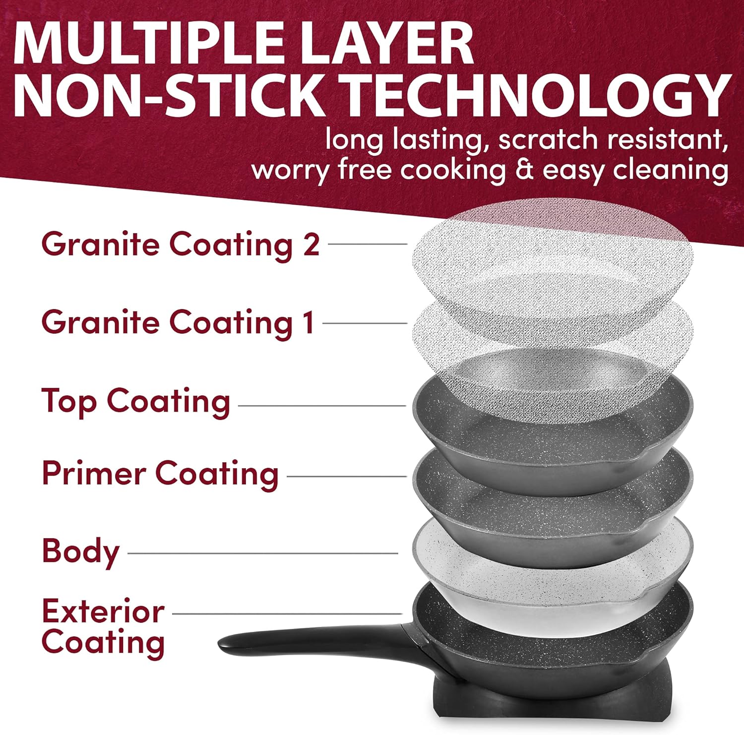 - Marbleized non-stick is more durable than non-stick and will not crack or peel. It quickly releases food for a no-fuss quick and easy clean up. Scratch resistant surface allows for worry-free cooking!