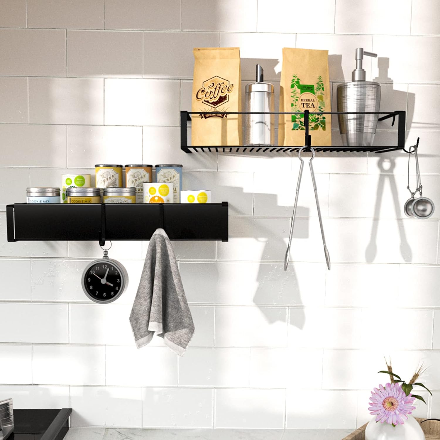- 【Tool-free Assembly】Easy to assemble and install. 2 pack strong adhesives ensure shelf doesn't swing or shift with use. You can refer to the video we provide to learn how to install. When you need to remove, use a hairdryer to heat the adhesive and then tear it off easily
