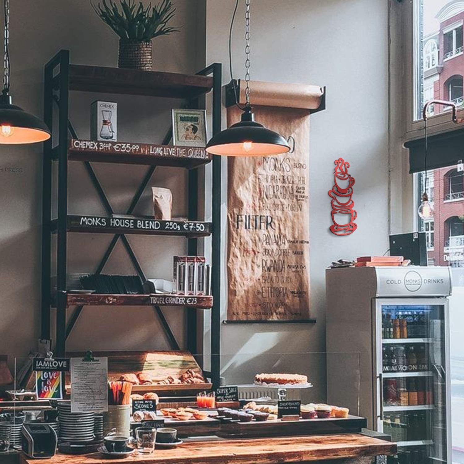 Lynicon Coffee Cup Metal Wall Art, Farmhouse Kitchen Restaurant Decor Coffee Bar Sign, Red