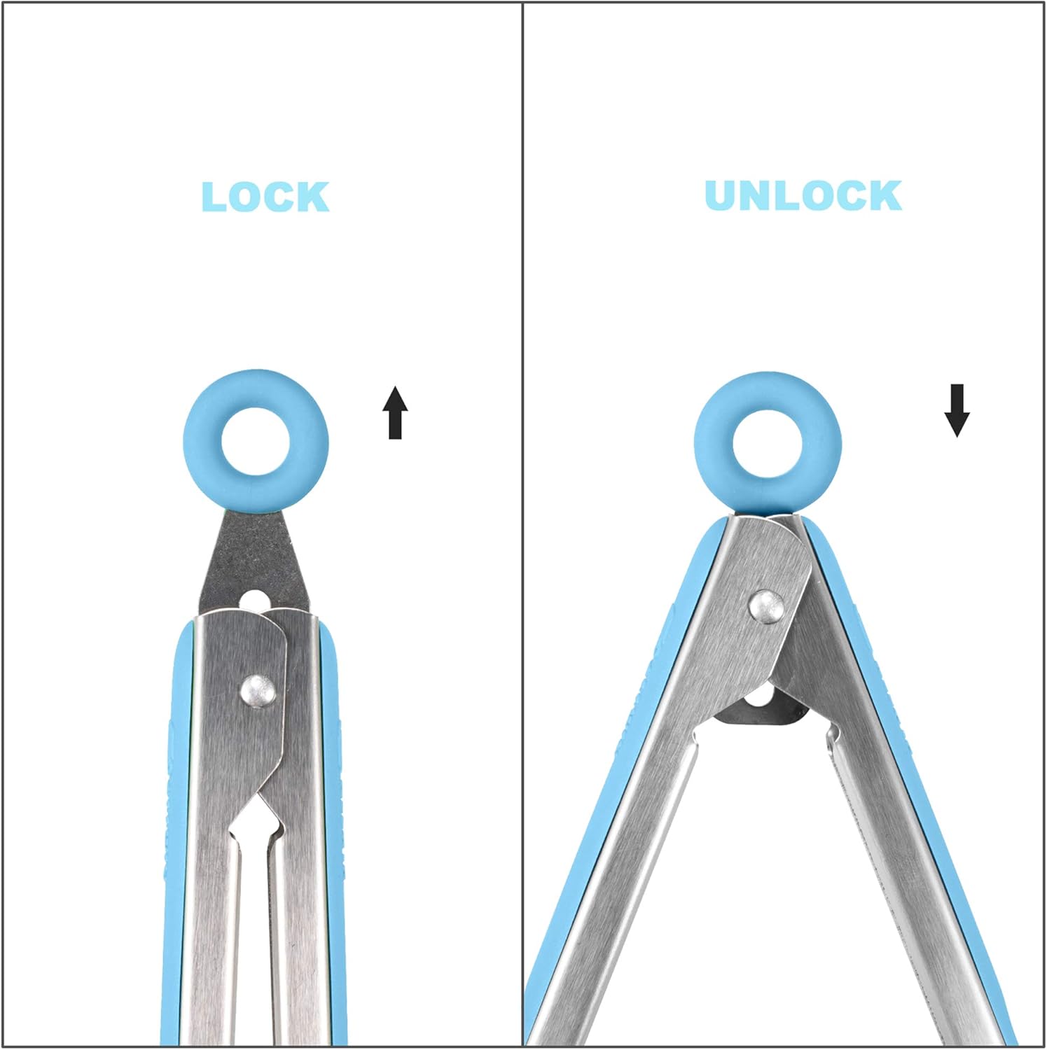 Premium 304 Stainless Steel Barbecue Turners, Heavy Duty Non-Stick BBQ Cooking Kitchen Tongs, 9" and 12" Blue
