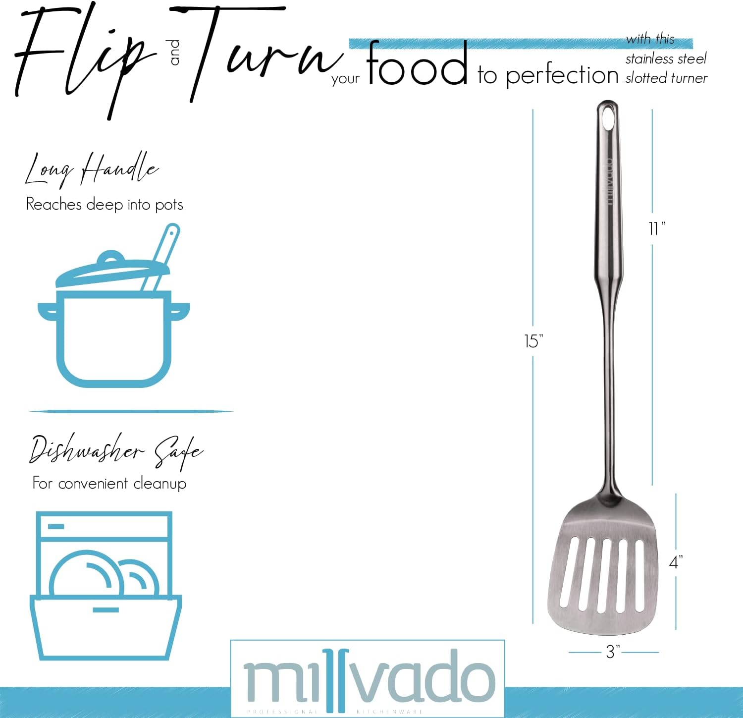 Stainless Steel Cooking Spatula,15 Inch Metal Turner, Kitchen Slotted Flipper For Grills, Camping BBQ’s, Frying Pancakes, Burgers, Large Cookware For the Professional Chef