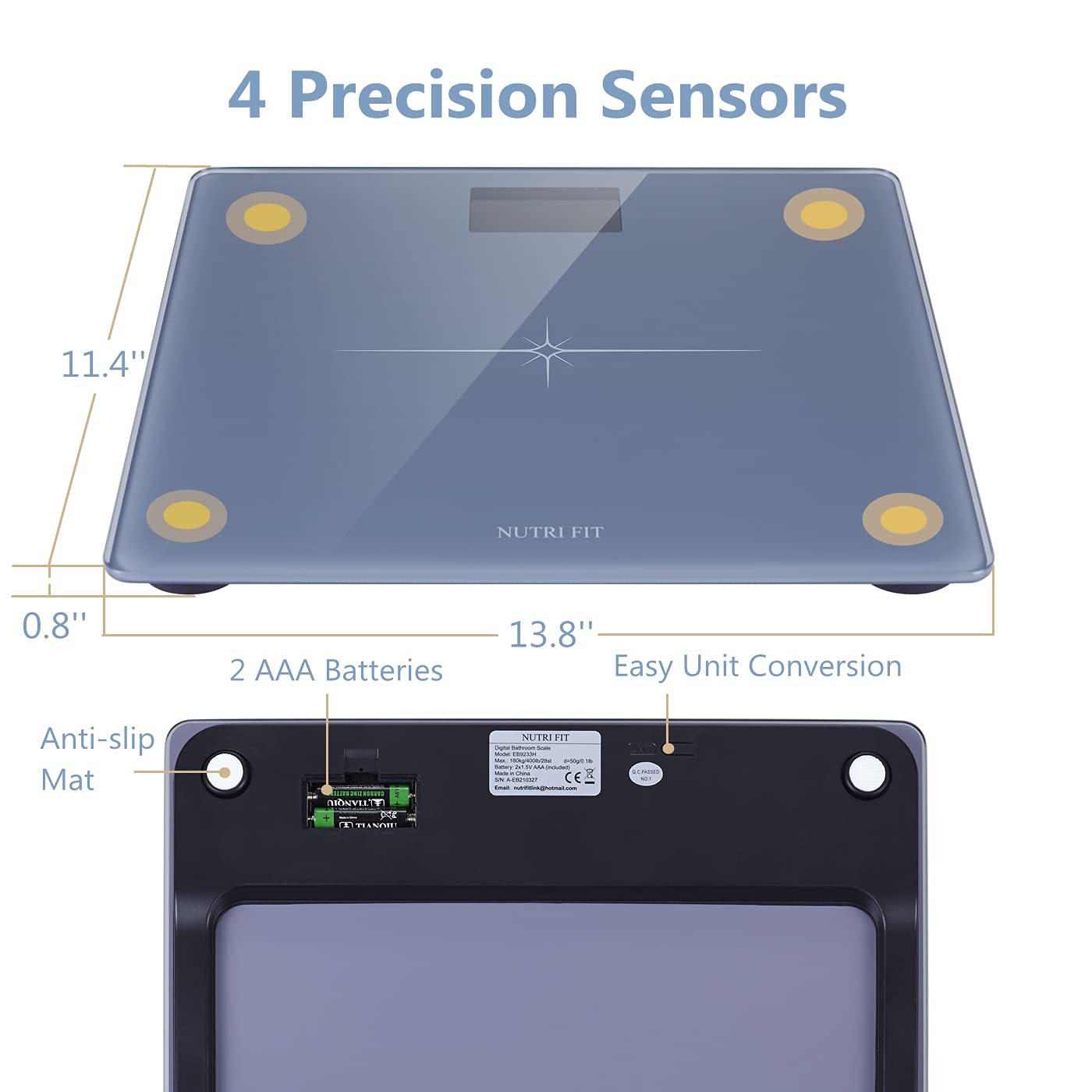 Ultra-Wide NUTRI FIT Bathroom Scale Digital High Accuracy Body Weight Scanner with Easy-to-Read Backlit LCD, 400 Pounds Ultimate Grey