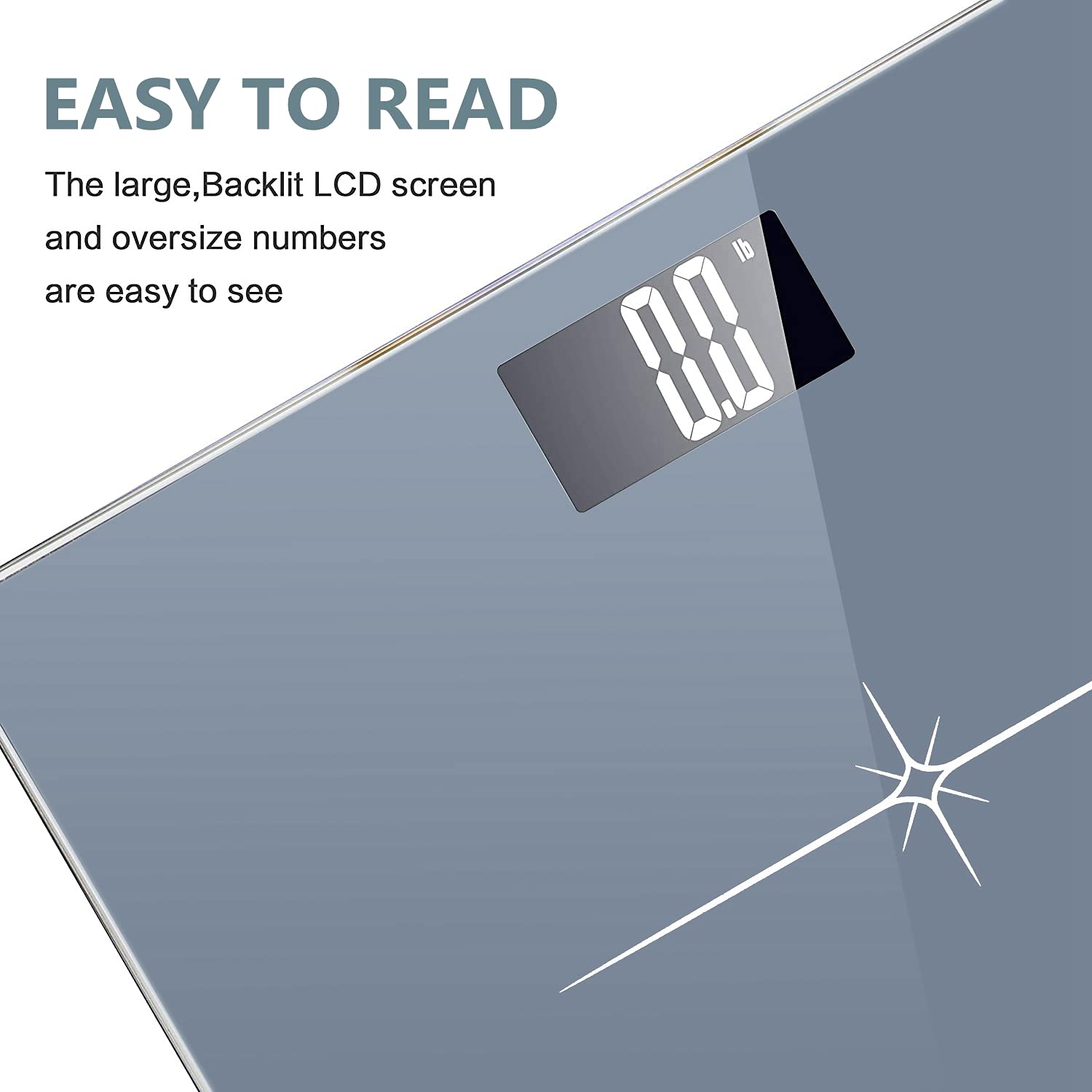 - Durable, Sturdy & Steady Platform: 6 mm-thick tempered glass, rounded corners, anti-skid pads and rollover protection not only provide exceptional sturdiness but also make the bathroom scale more durable and safe. Its large platform is comfortably accommodating and suitable for everyone to use, especially taller people and those with balance issues.