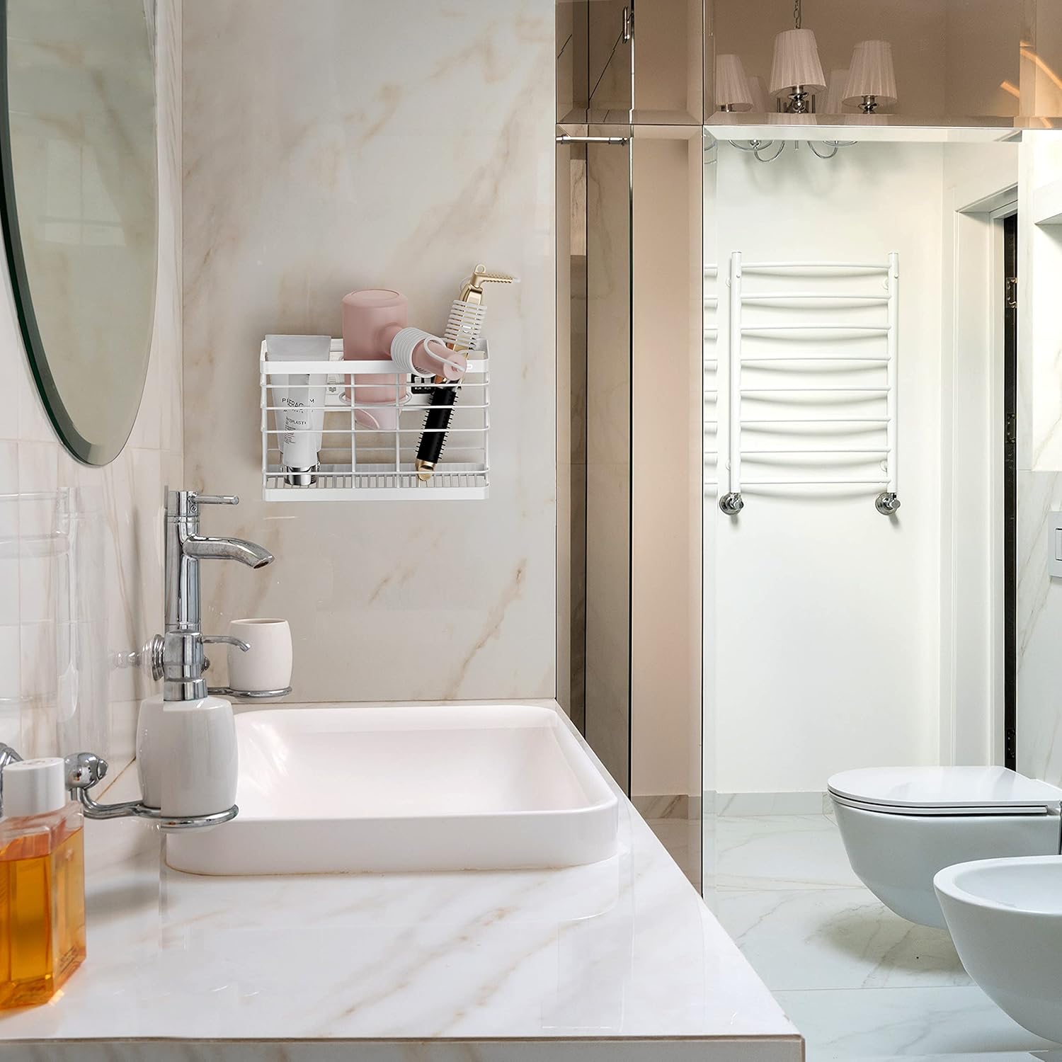 - 【Easy Installation】Bathroom organizer basket easily installs on bathroom or cabinet walls with the included Adhesive; Create additional storage space where you need it; Install inside a cabinet door for more discreet storage.
