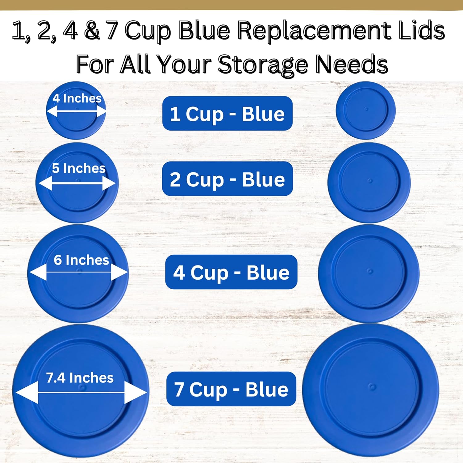 - VALUE PACK BUNDLE INCLUDES - 8 Pack, 2 Each of Size: 1 Cup/236 mL/7202-PC, 2 Cup/470 mL/7200-PC, 4 Cup/950 mL/7201-PC & 7 Cup/1.65L Round Lids, Blue โ ๏ธLids Onlyโ ๏ธ - ๐ซ Glass Containers Not Included ๐ซ