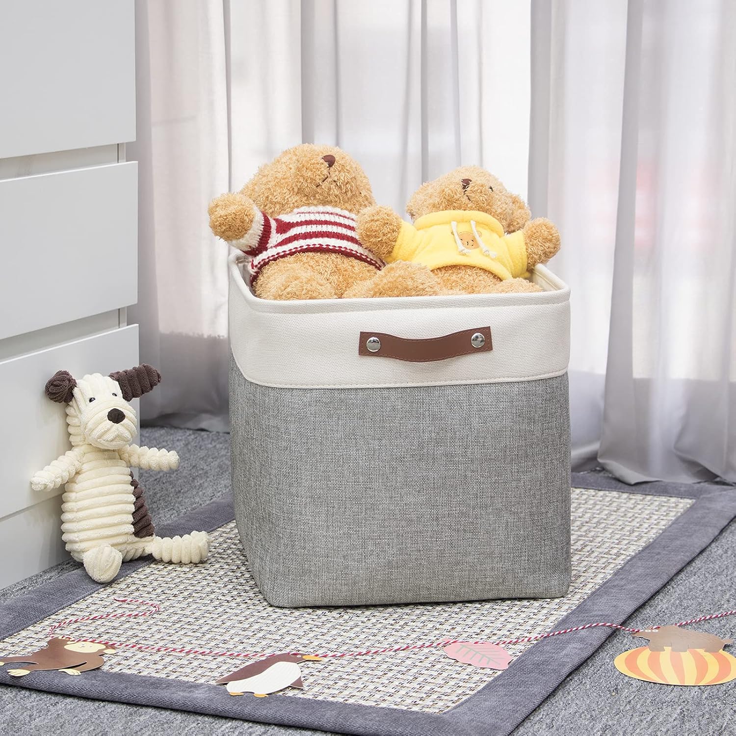 - 【Sturdy Leather Handles】 The clothes basket comes with 2 sturdy leather handles for easy access and for portability. Sturdy leather handles that add a classic touch. Strong rivets and handles, make these fabric storage baskets are sturdy and easy to grab and make them easy to carry or pull off and out of shelves