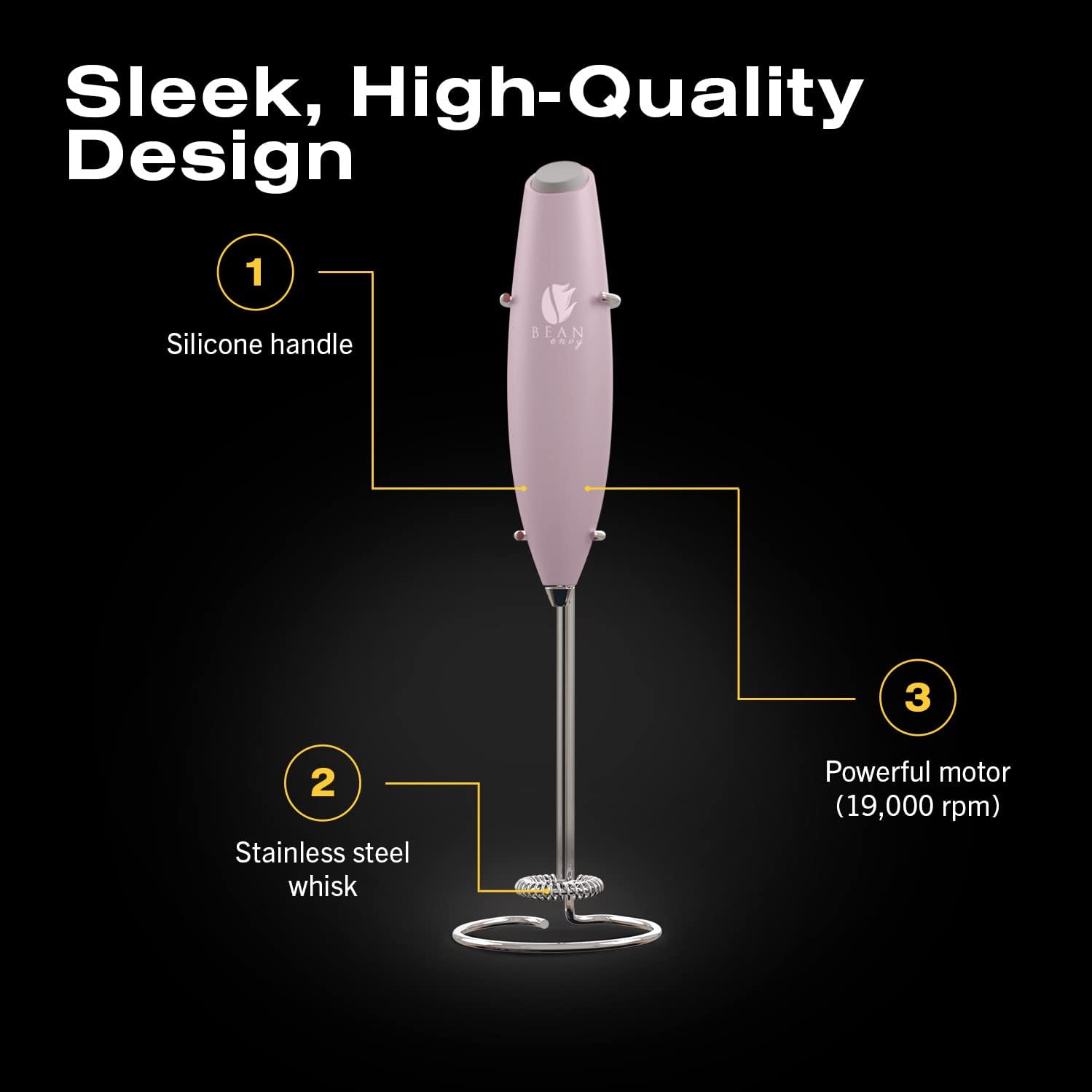 Bean Envy Milk Frother, Coffee Stirrers, Frother Wand, Milk Frother Handheld, Frother with stand, Hand Blender for Coffee, Lattes, Cappuccino, Matcha and Hot Chocolate – Kitchen Gifts - Pink