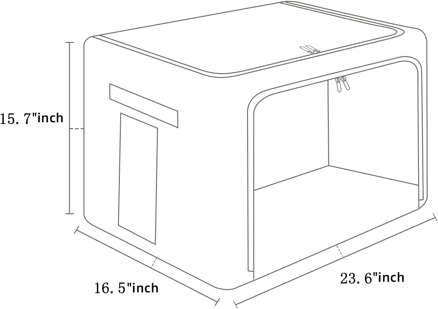 FHSQX Extra Large Clothes Storage Bins Foldable Metal Frame Storage Box Stackable Linen Fabric Box Organizer Set with Carrying Handles and Clear Window (Beige, 23.6x 16.5x 15.7 Inch)