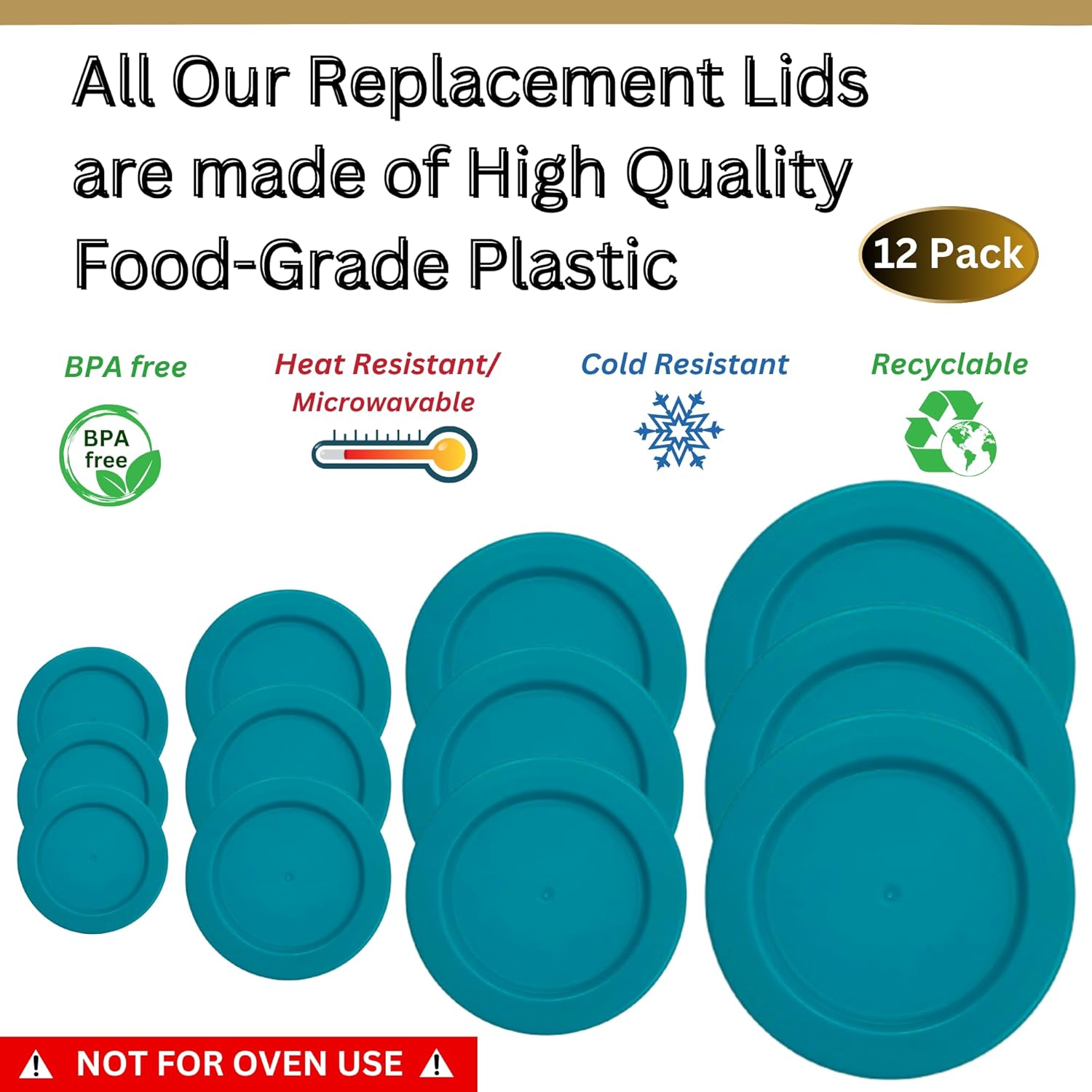1, 2, 4 & 7 Cup Turquoise Replacement Lids/Covers for Pyrex, Anchor Hocking & KlareWare Storage Bowls *Lids Only Glass Container Not Included* (12 Pack *Three of Each Size*)