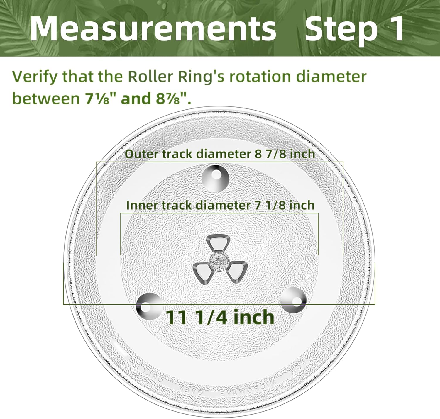 - 【Measurement 1】This 11 1/4 microwave plate has a one-dime sized small coupler hole in the center. The center spot of the microwave oven plate coupler measures 11/16" in diameter