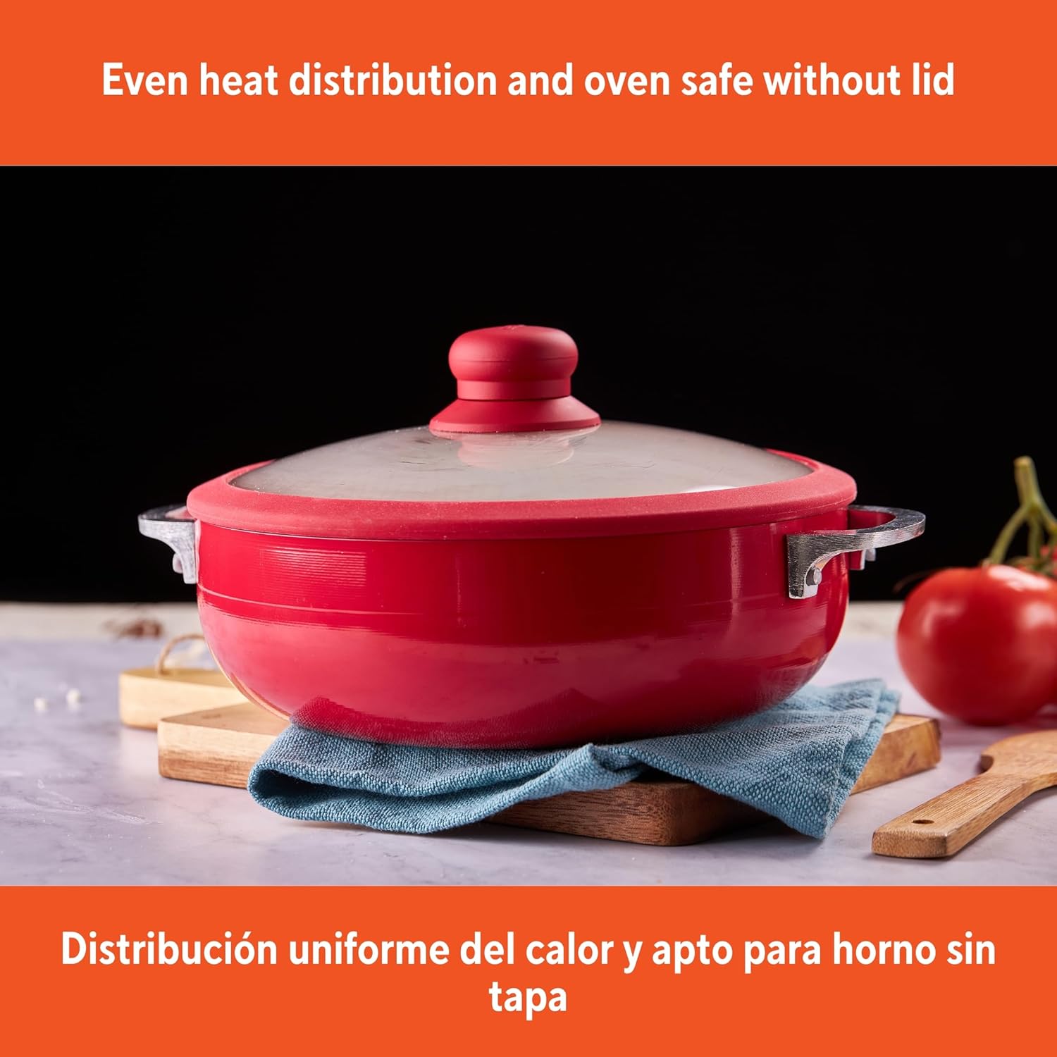 - DURABLE CERAMIC DESIGN: Made of aluminum for durable cooking performance, featuring a ceramic interior and red exterior finish for both functionality and aesthetics