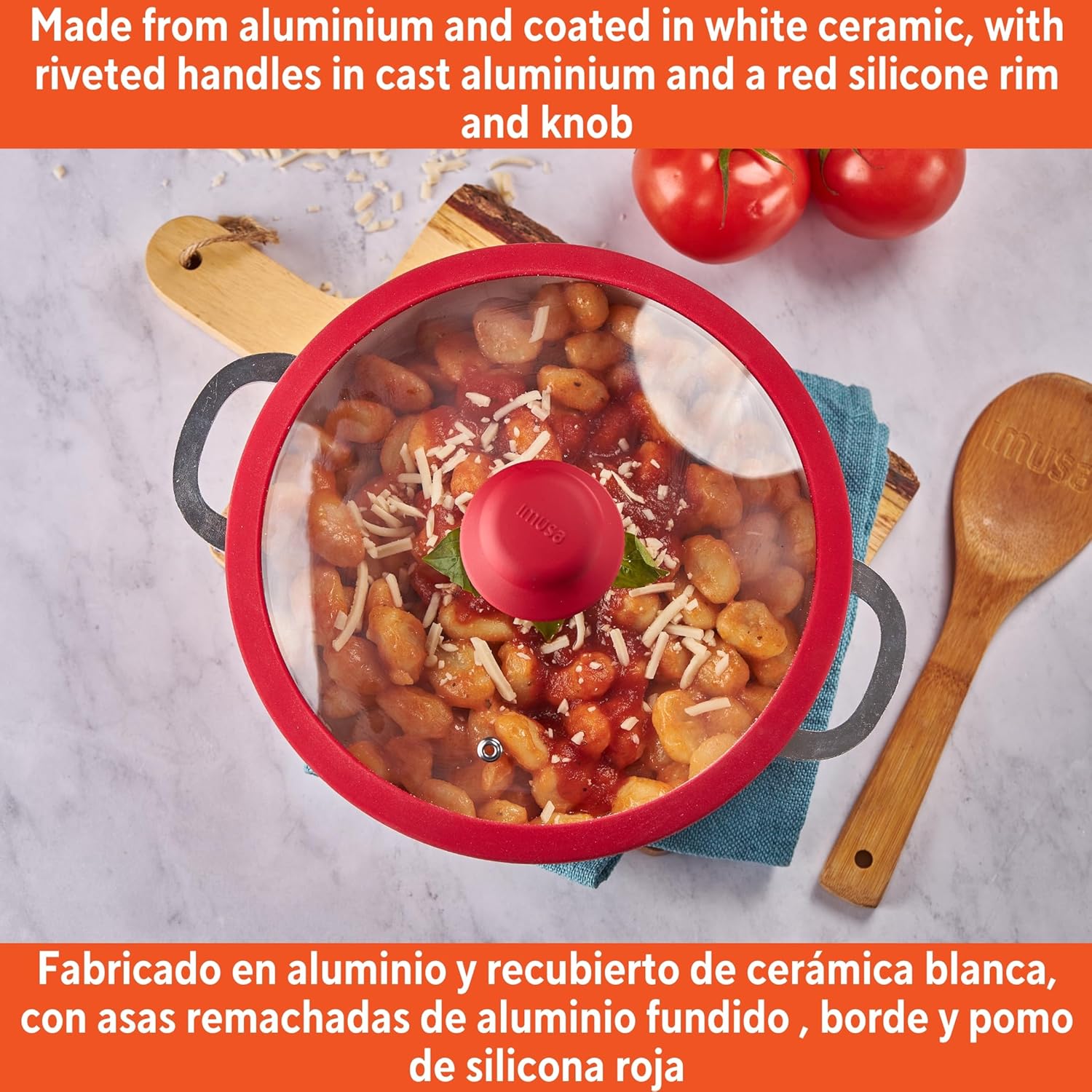 IMUSA 6.9qt Aluminum White Ceramic Caldero with Glass Lid & Silicone Rim, Red