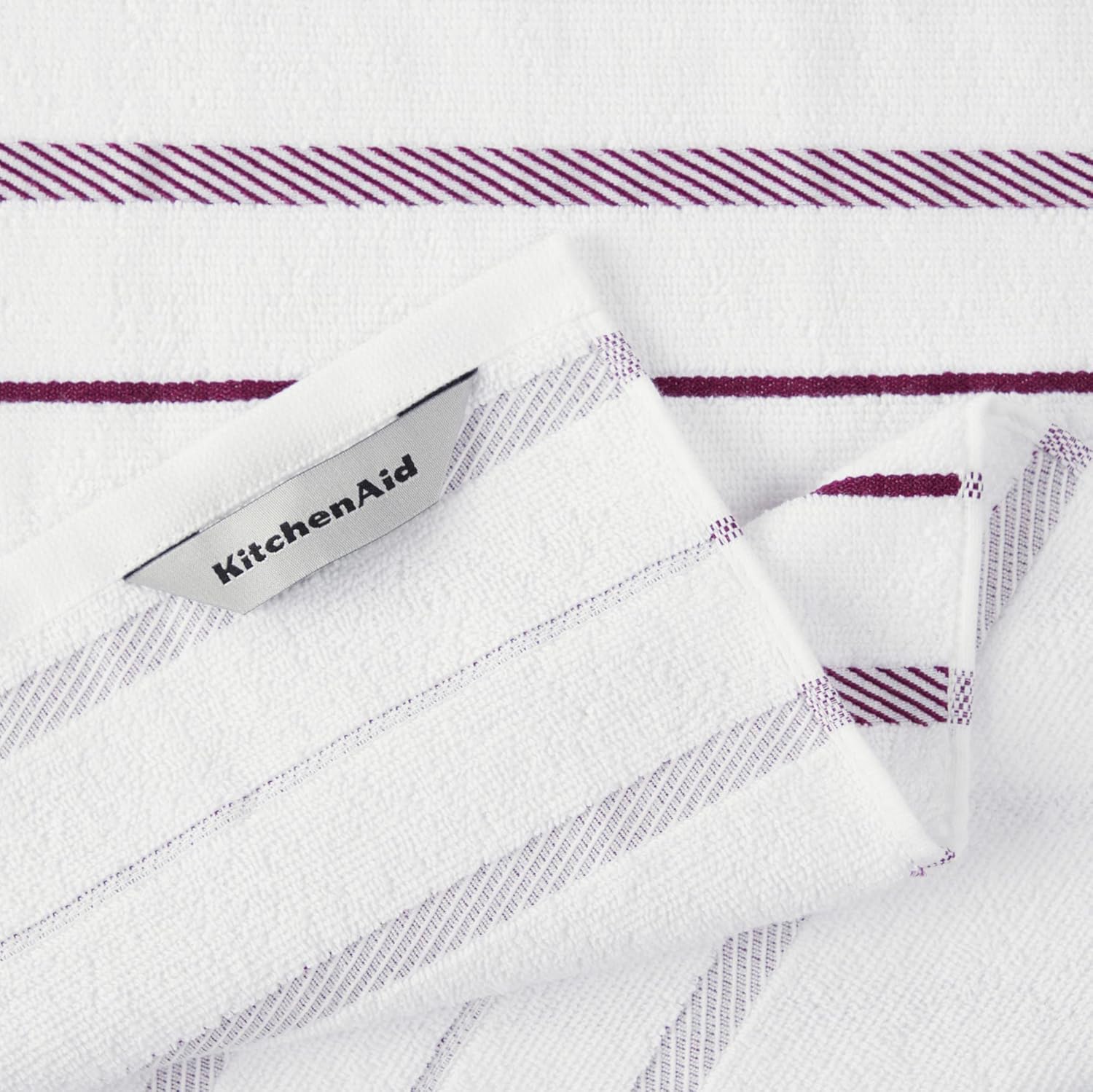 KitchenAid Albany Kitchen Towel 4-Pack Set, Boysenberry Purple/White, 16"x26"