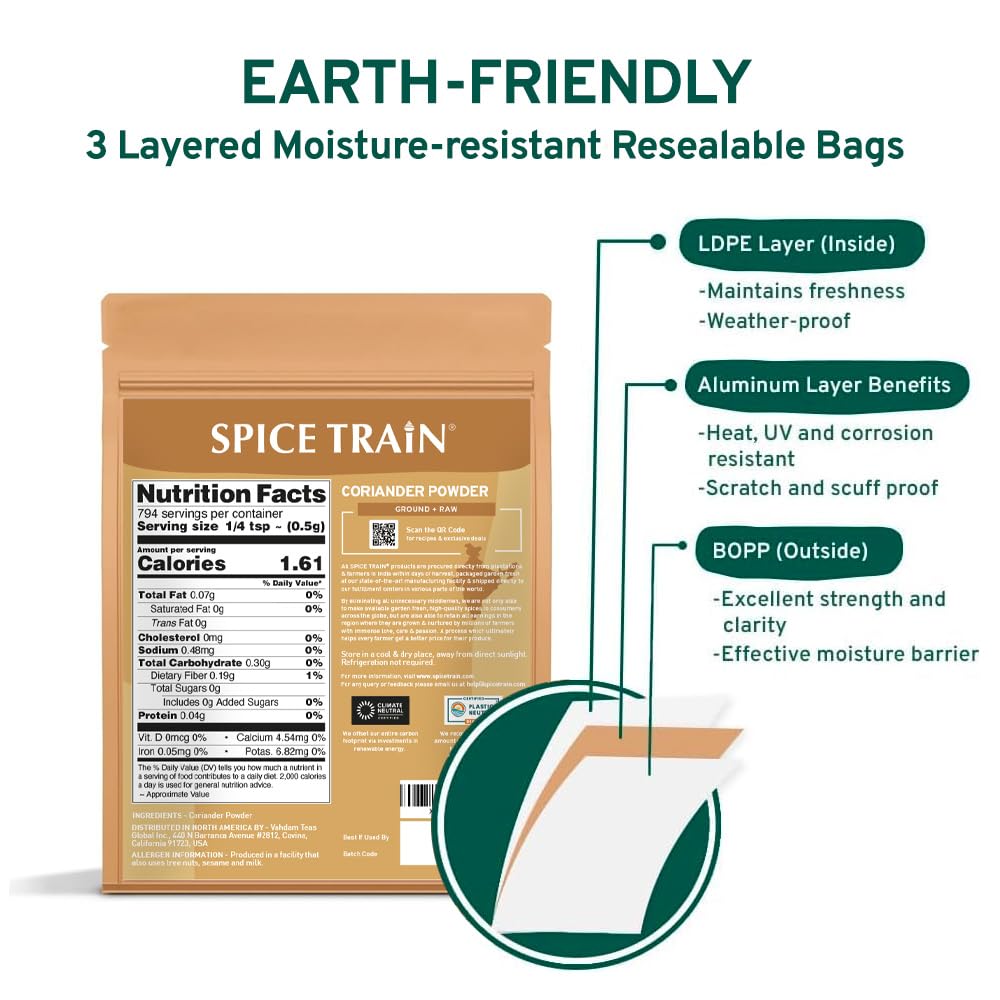 Coriander Powder (14oz) 100% Natural Ground Coriander | Premium Quality and High Value | Non-GMO, Gluten Free, Sourced from India | No Adulterations | Packed in Resealable Ziplock Pouch
