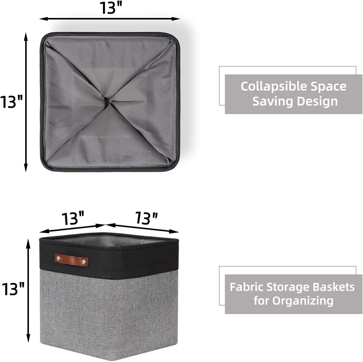HNZIGE Storage Foldable Baskets Cubes Set(3 Pack) Fabric Bins for Shelves,13 Inch Storage Basket for Organizing with Leather Handles for Home, Toys, Clothes, Kids Room, Closet Storage(Black&White)