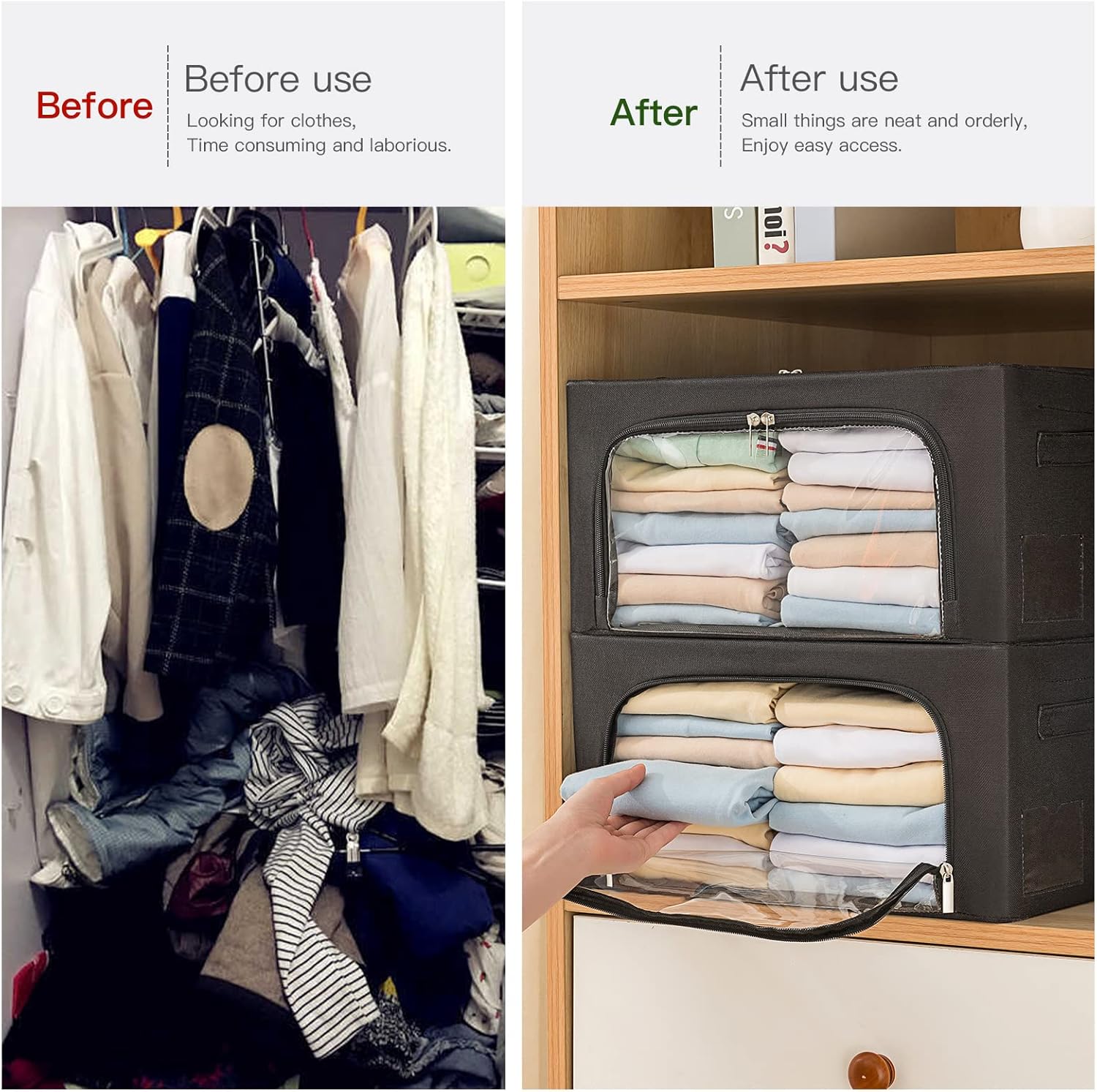 - EASY TO ACCESS AND STORE - Does it seem like you have less functional space than ever? don't worry, These bins are a good solution to our space issues. The access to the top or front is all nice features, it easy to store and remove your clothes and bedding. that you can see through the clear window in front or both sides of what you have in them.