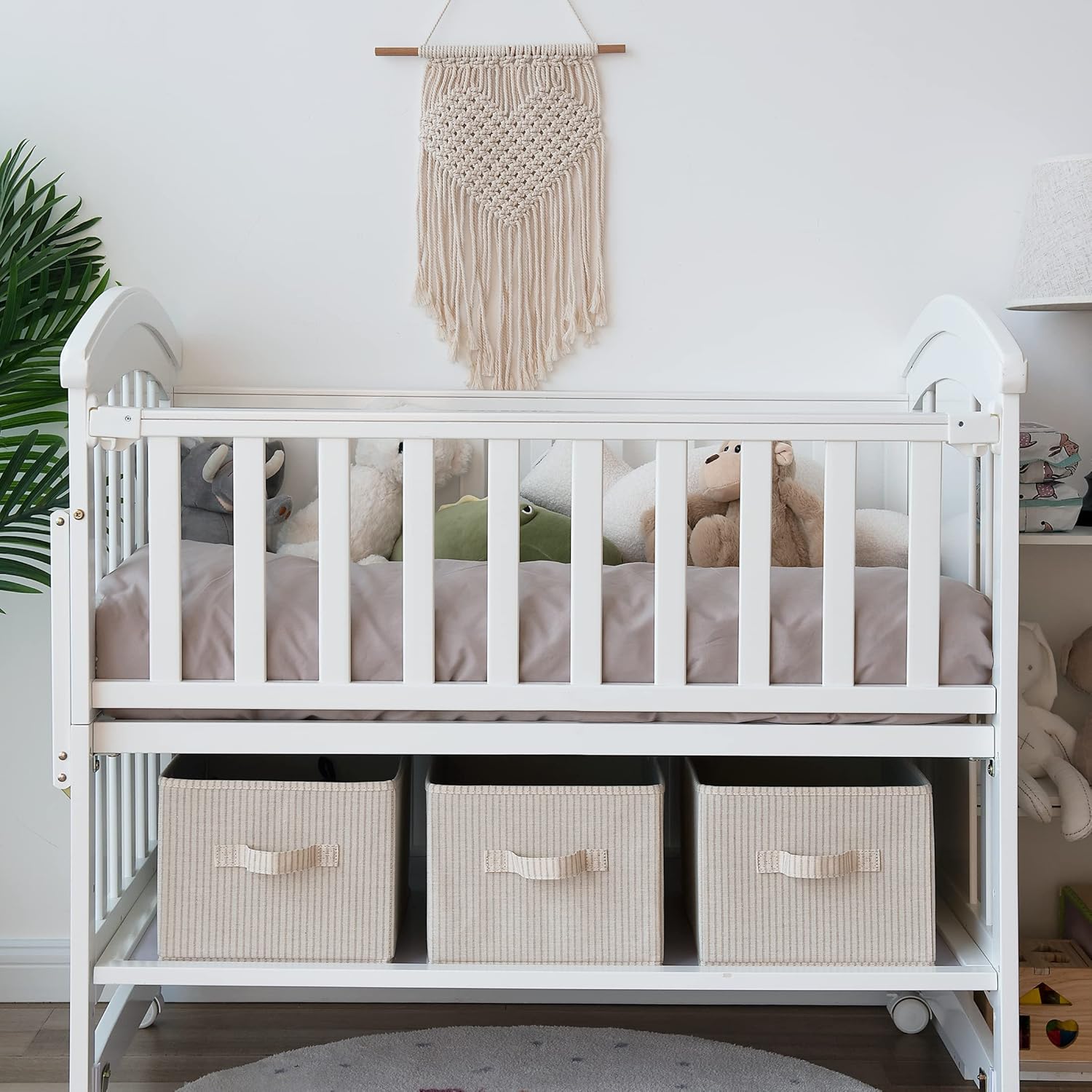 - The polyester-canvas fabric and the inserted heavy-duty boards of the storage bins allow them to support a weight of up to 25 pounds.