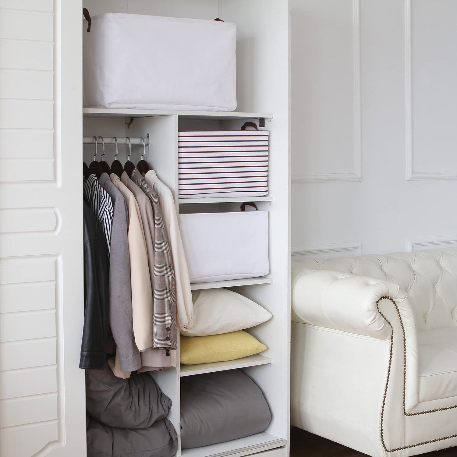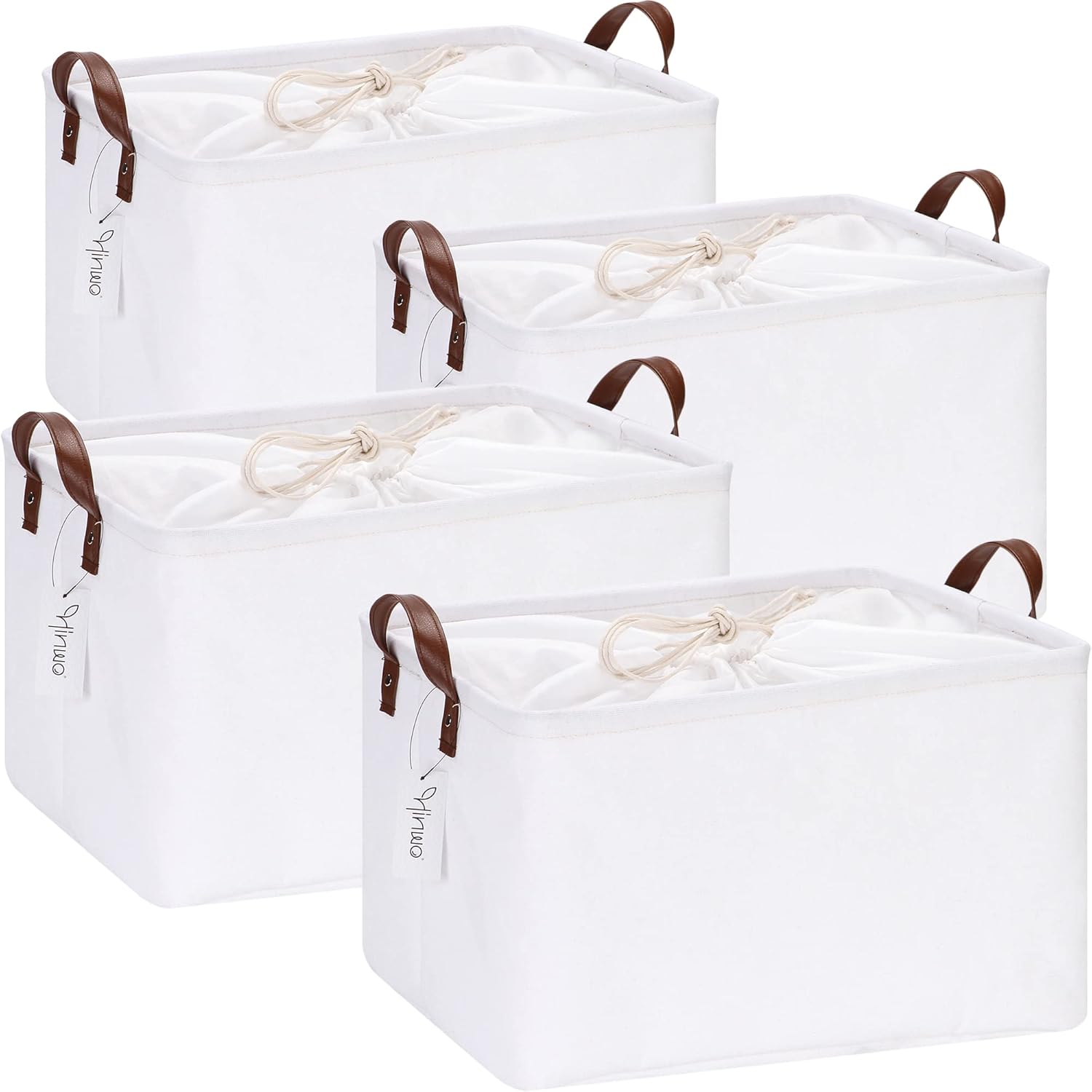 Hinwo 31L Large Storage Bins, 4-Pack Closet Organizers and Storage, Foldable Clothes Storage Baskets with Handles, Containers for Clothing, Blanket, Towels, Toys, Bedding (White)