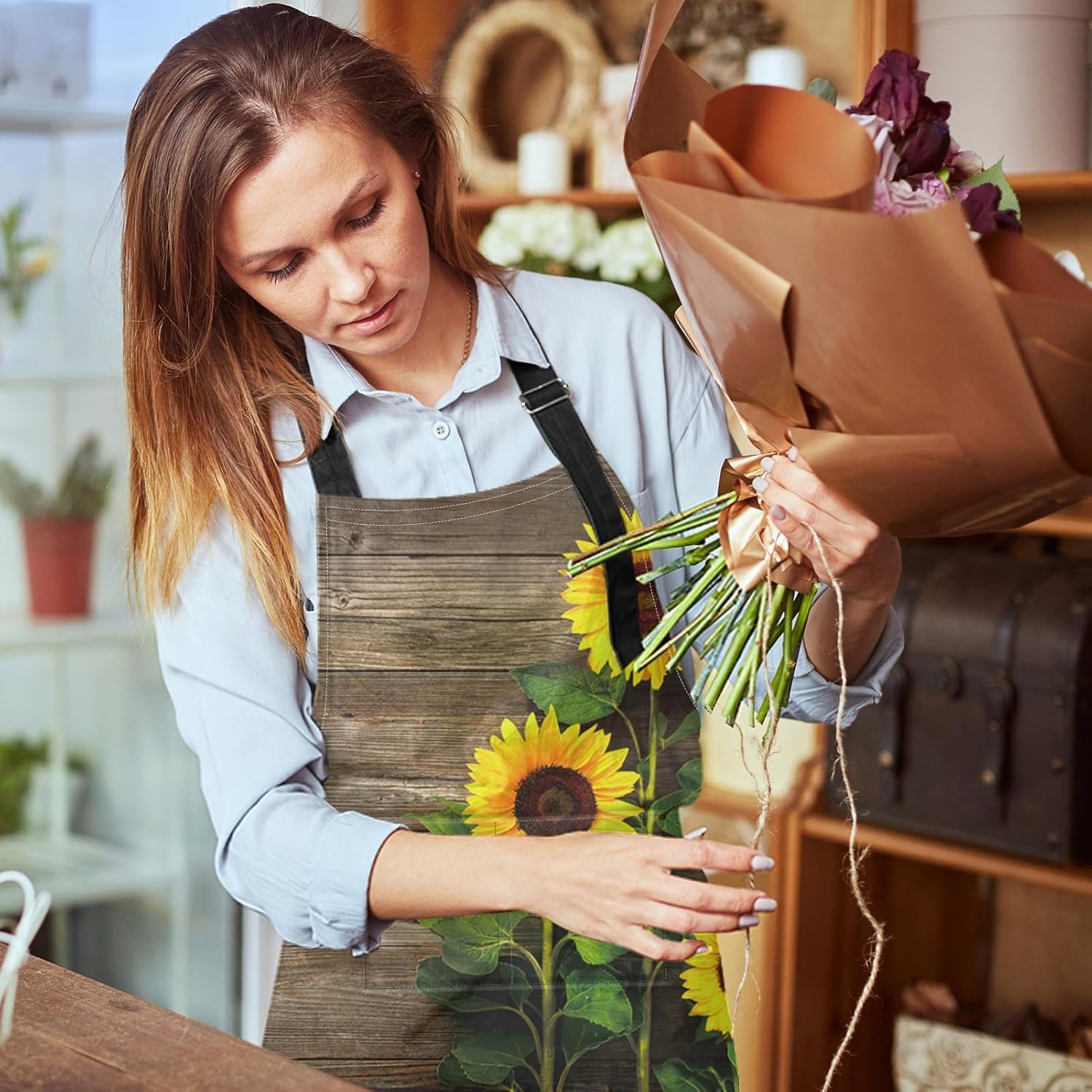 Britimes Apron Home Kitchen Cooking Baking Gardening for Women Men with Pockets Autumn Sunflowers Wooden Board Flower 32x28 inch