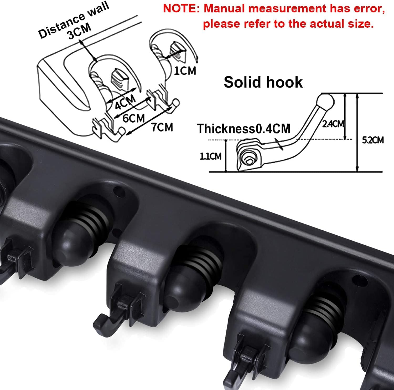 - NO-SLIDE Design Broom Organizer- 5 spring-loaded slots with rubber grips that hold tightly to tool handles to keep them firmly in place. 6 Heavy Duty hooks are movable.