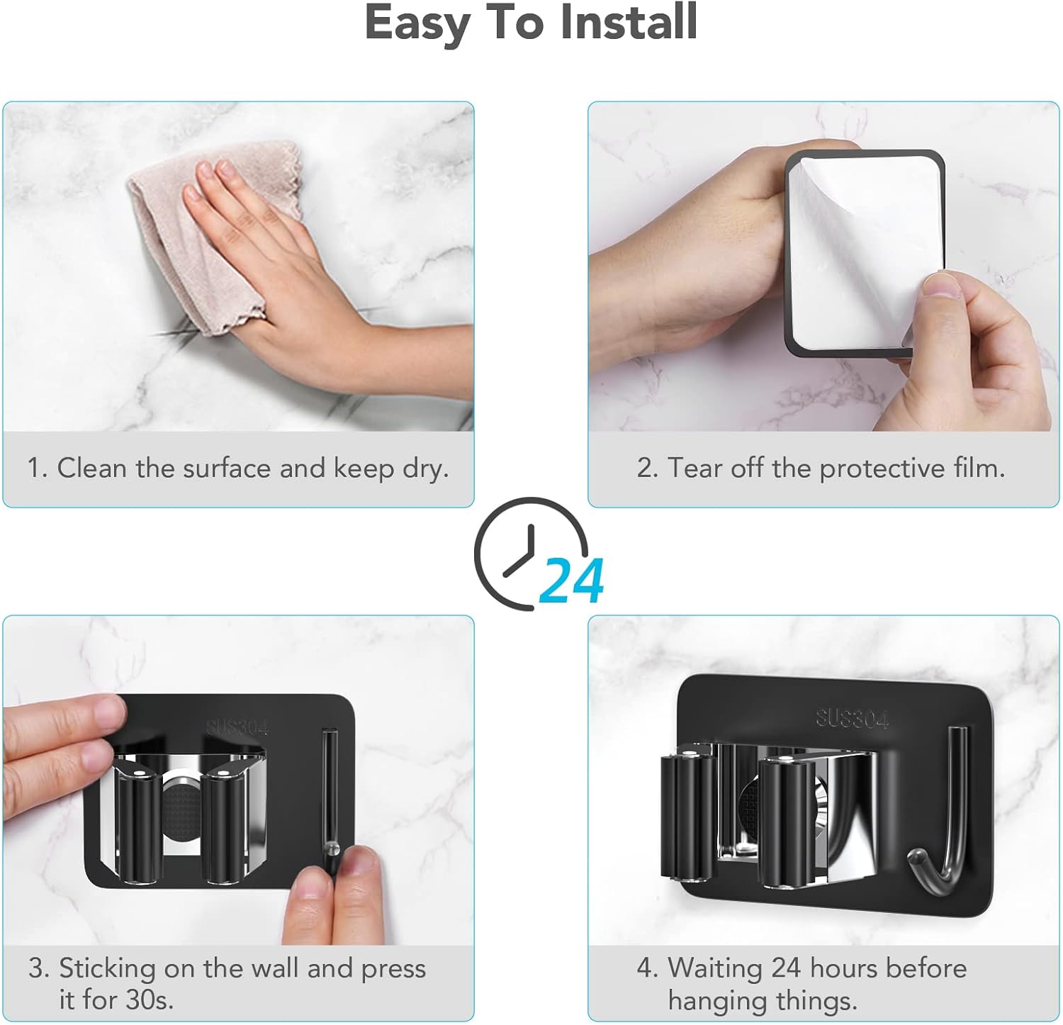 - ✔ Easy to Install: HOMEASY wall mounted mop broom clip hangers is easy and convenient to install, just stick on the wall with strong self adhesive which firmly keeps your mop in place and guards them from falling off