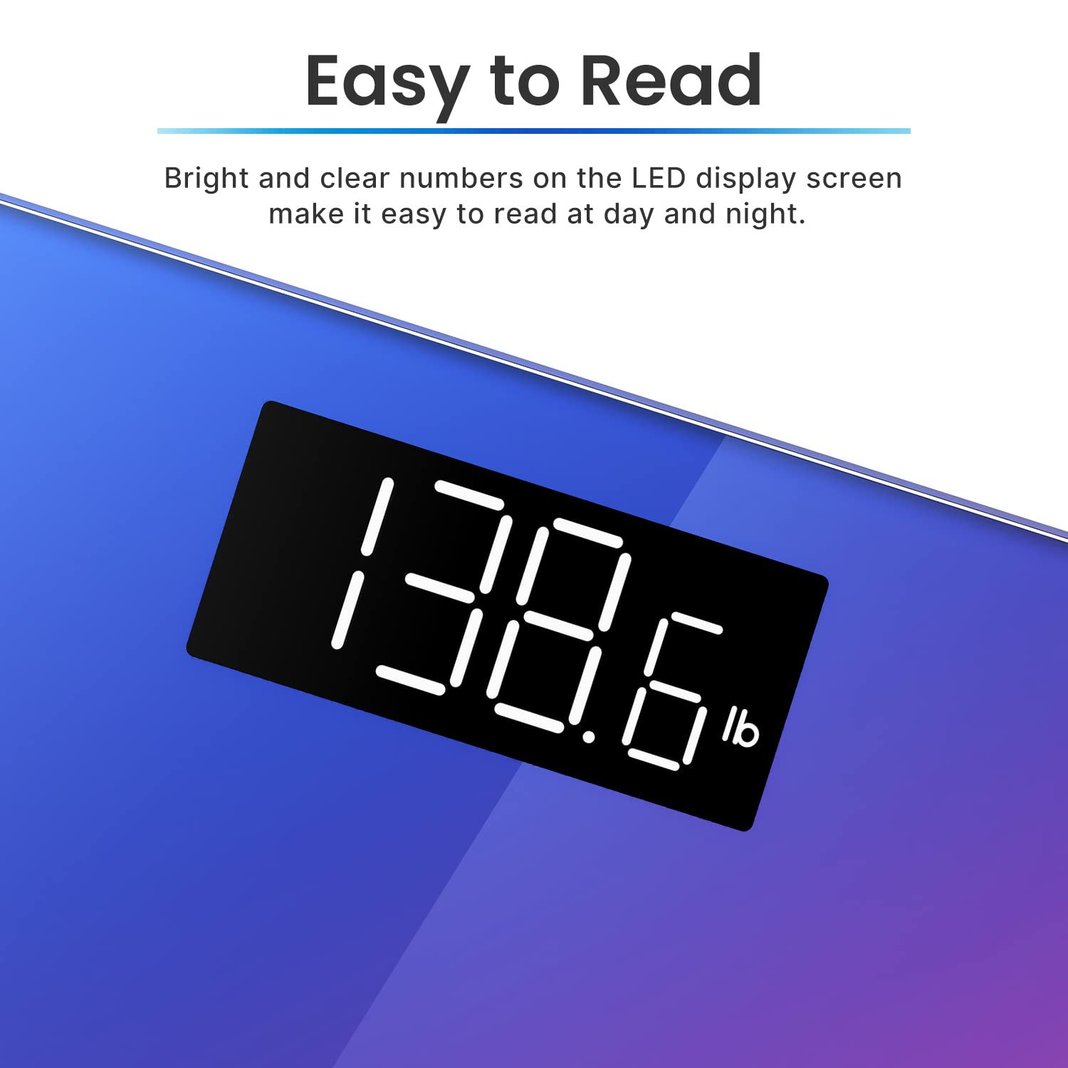 - Easy-to-Read LED Display: Clearly shows weight measurements in bold and well-defined numbers, allowing you to quickly and easily check your weight at a glance, even in low-light environments.