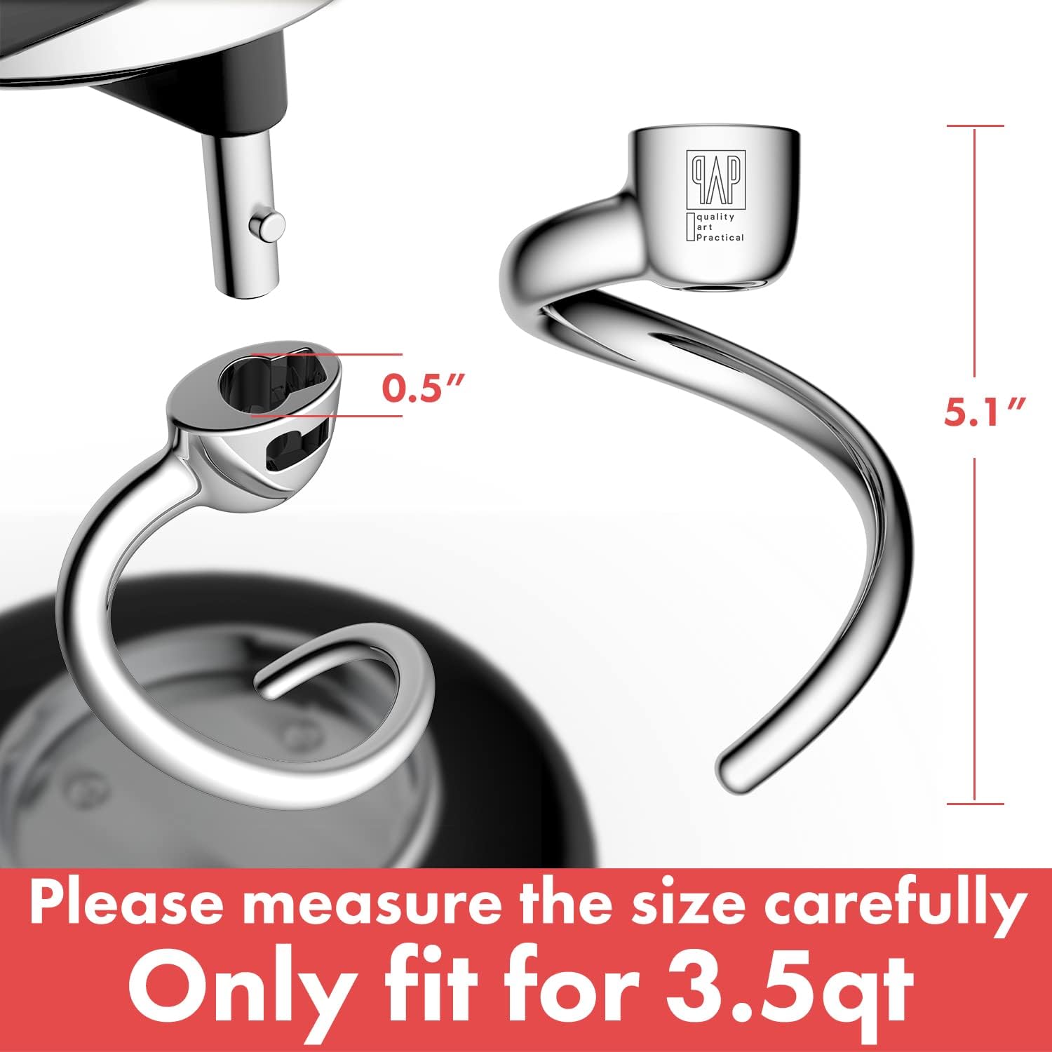 Spiral Dough Hook Replacement for KitchenAid 3.5 Qt. Tilt-Head Stand Mixers/Polished 18/8 Stainless Steel Accessories/No coating/Dishwasher Safe/Compatible for KSM3311/3316/ Artisan Mini Series
