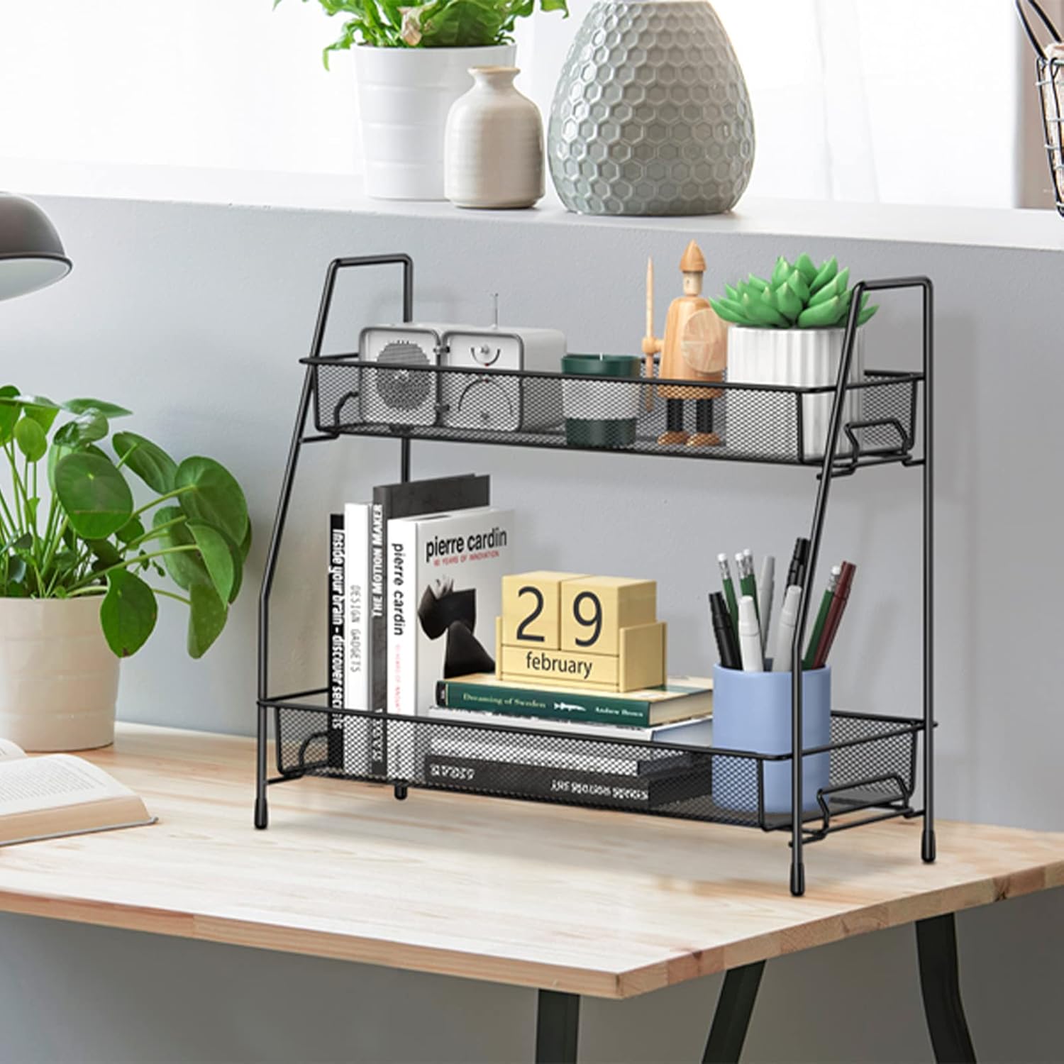 - Space-saving: Two-layer spice racks can perfectly accommodate all kinds of dresser organizer,bathroom sink organizer,under sink organizers and storage,etc.
