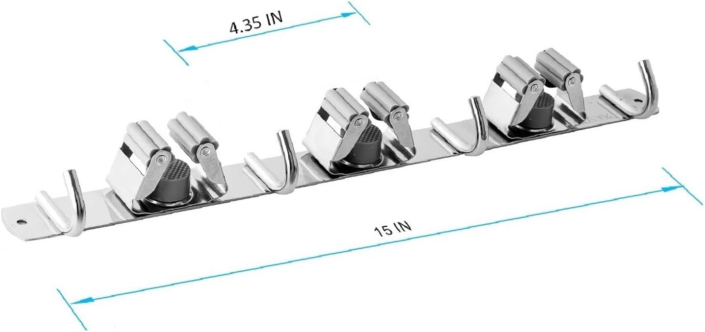 - [STURDY AND DURABLE] The mop holder is made of high quality 304 stainless steel, the upgraded broom holder has three screw holes, and the perforated installation can carry heavy loads.