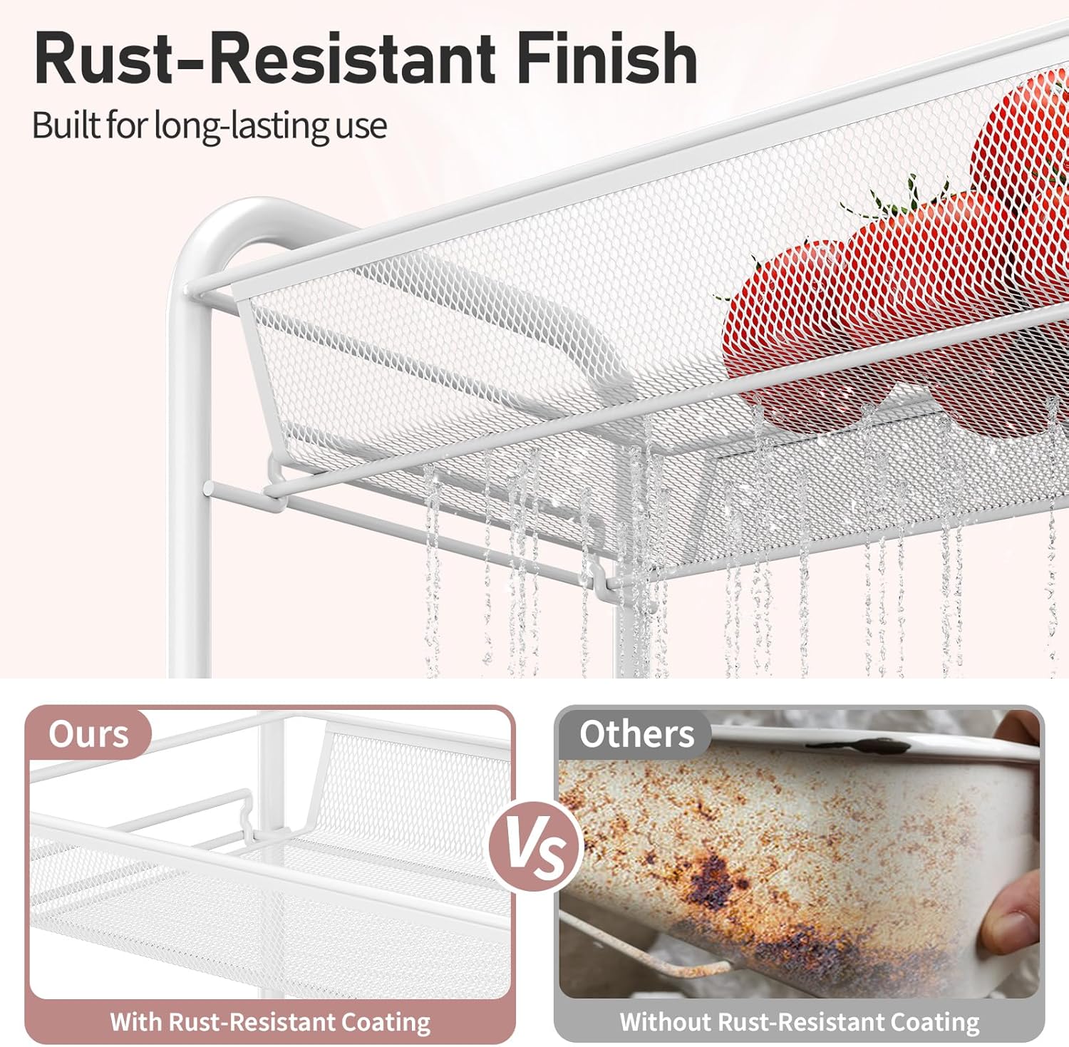- 【Premium Quality】The mesh storage cart is made of high-grade metal material. Sturdy frame and rust-resistant process make it durable. Ergonomic handle and pole will not deform easily,smooth of surface won't scratch you.The weight capacity of each metal basket is up to 5kg(11lbs).
