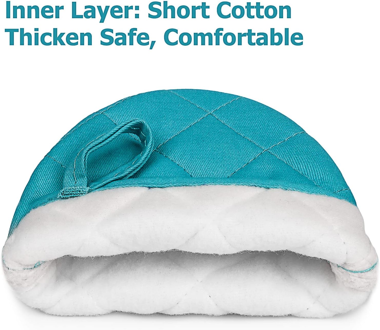 - PROTECT YOUR HANDS: These pot holder has 2-layer, with soft inner. They will protect your hands from heat, steam and grease. These mitts measure 6.8 inches x 5.3 inches, perfect for small hands.