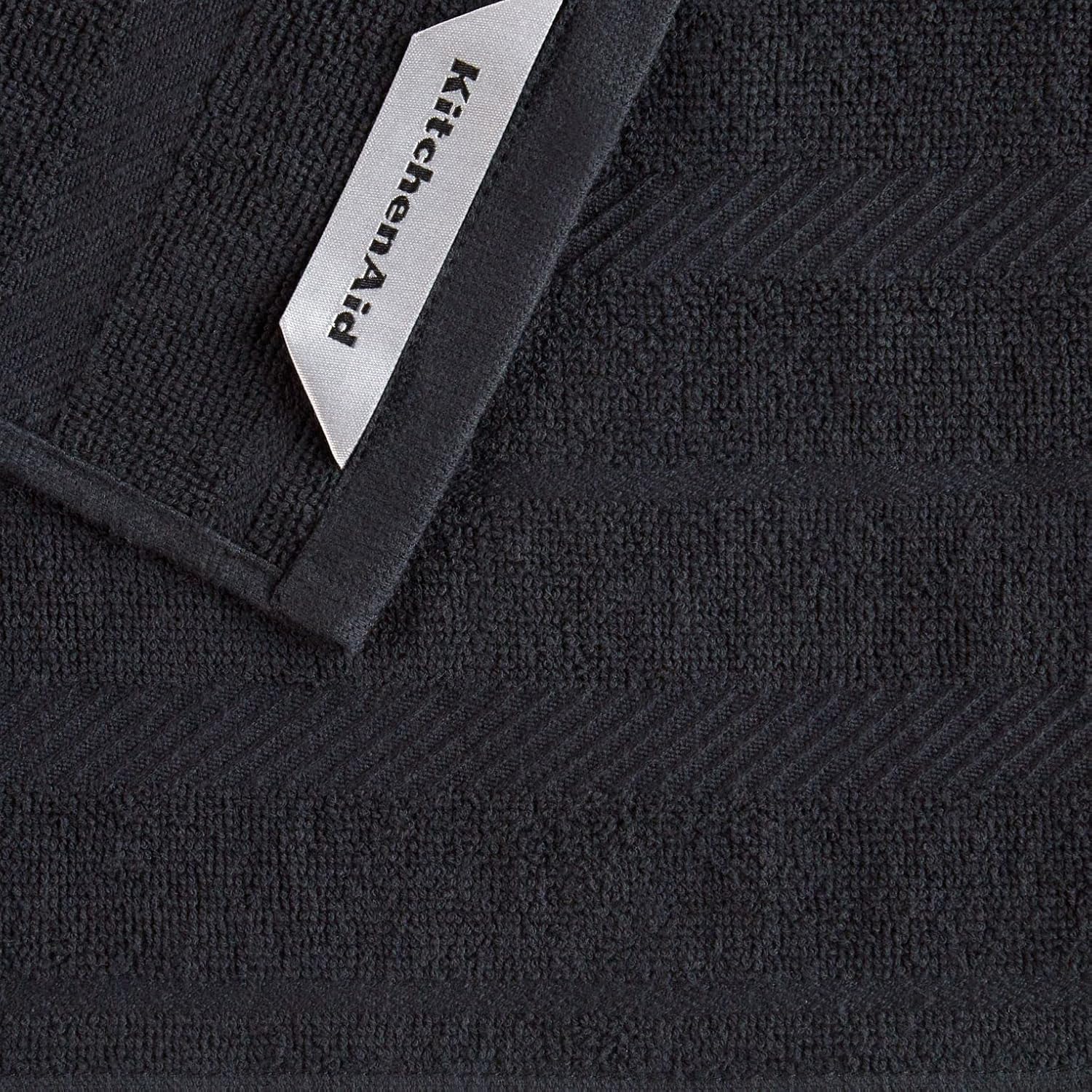 KitchenAid Albany Dishcloth 8 Pack Set, Matte Black/White, 12"x12"