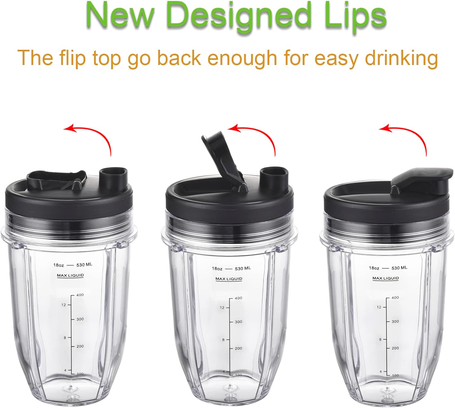 [Upgraded] Replacement 18oz Cups for Nutri Ninja Blenders, Blender Replacement Parts with Upgraded Lid For Auto-IQ BL480, BL482, BL490, BL640, BL642, & BL680 Auto IQ Series Blenders., 2 Pack