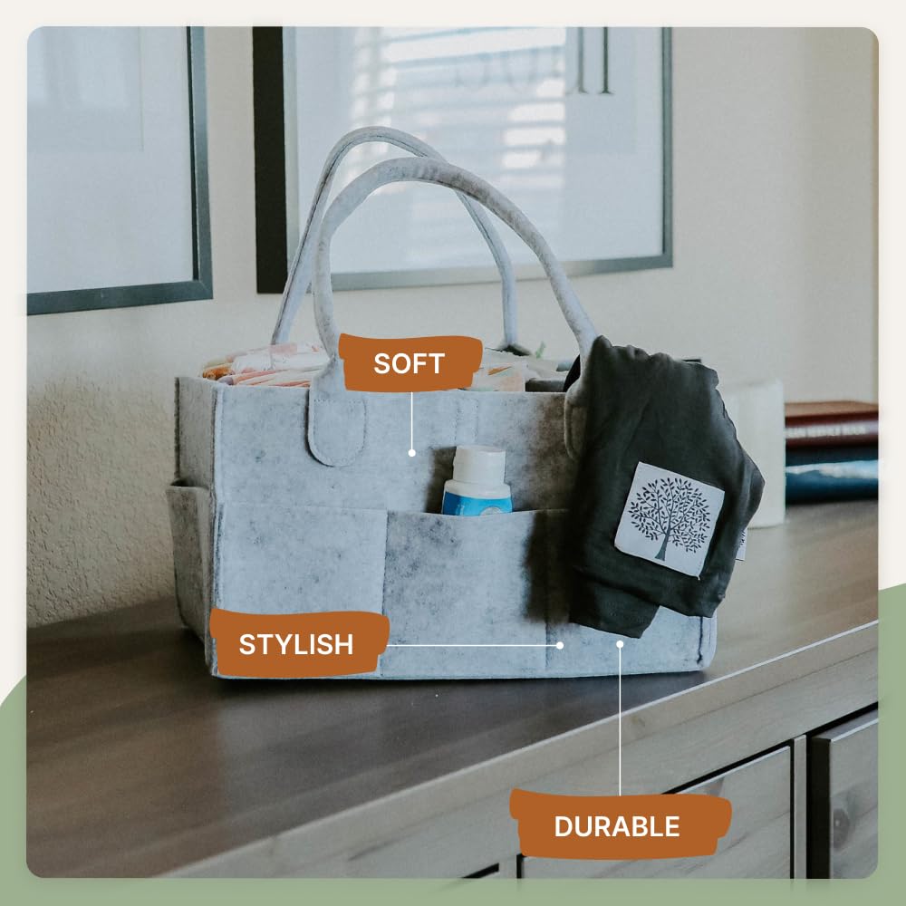 - QUALITY AND SATISFACTION GUARANTEE: Crafted from soft felt, our diaper caddy is built to last. The high-quality materials ensure durability and easy maintenance. We stand behind the product with a satisfaction guarantee, making your purchase risk-free. Elevate your diaper organization with the Parker Baby Diaper Caddy – the ultimate diaper bag essential and nursery organizer.