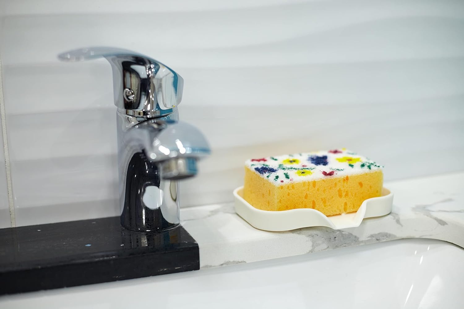 - ✅ PREMIUM SILICONE MATERIAL: Our silicone sponge holder is made of durable and flexible silicone. After use, simply wash it with a warm soapy water. Or simply toss into the dishwasher! Each sink tray measures 4.7x 3.5 Inches.