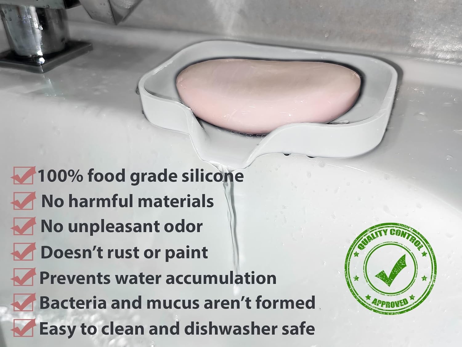 - ✅ Easy to Clean: kitchen soap tray crafted from incredibly soft silicone, the silicone soap dish can be conveniently wash or brushed directly, or placed in the dishwasher for effortless cleaning. It is recommended that you should wash it weekly to keep it clean.