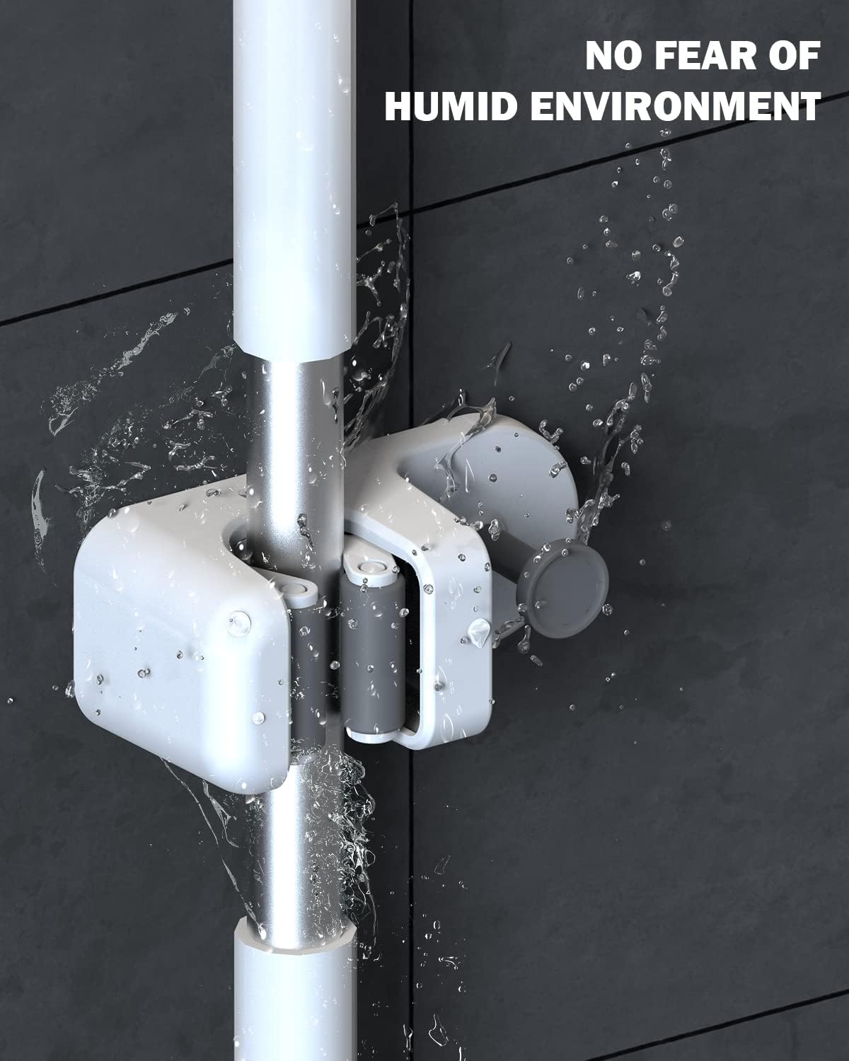 - DAMAGE FREE WALL – No drills needed, this broom organizer wall mount comes with 2 strong sticker so you won't need to make any permanent wall holes to store and display your sweeping tools, mop holders, dustpans, and brush hangers.