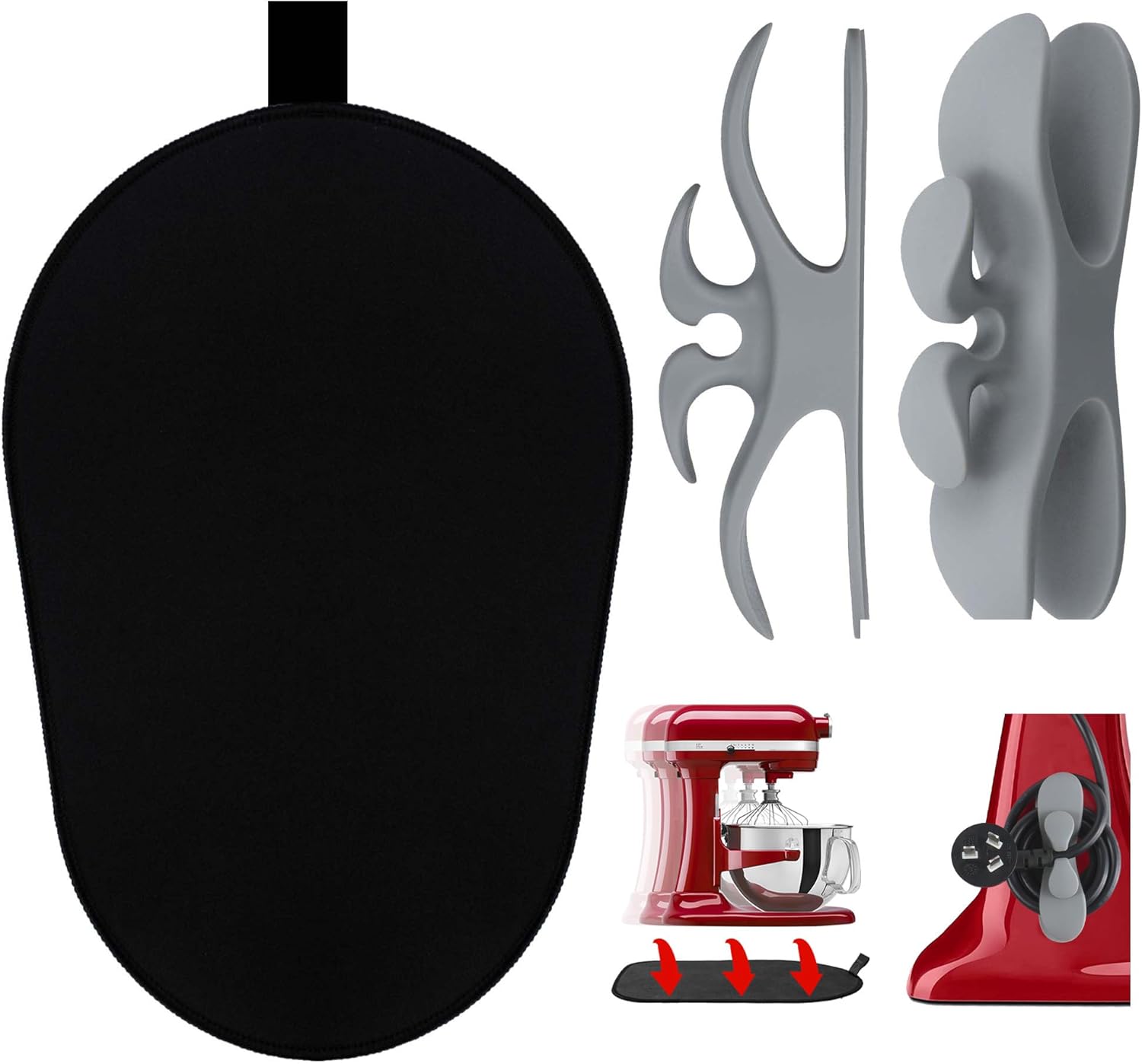 Sliding Mat for Kitchenaid Mixer with 2 Grey Kitchen Accessories, Mover Slider Mat Pad for 5-8 Qt Bowl-Lift Stand Mixer, Kitchen Appliance Slider Mat Compatible with Professional 600 Stand Mixer