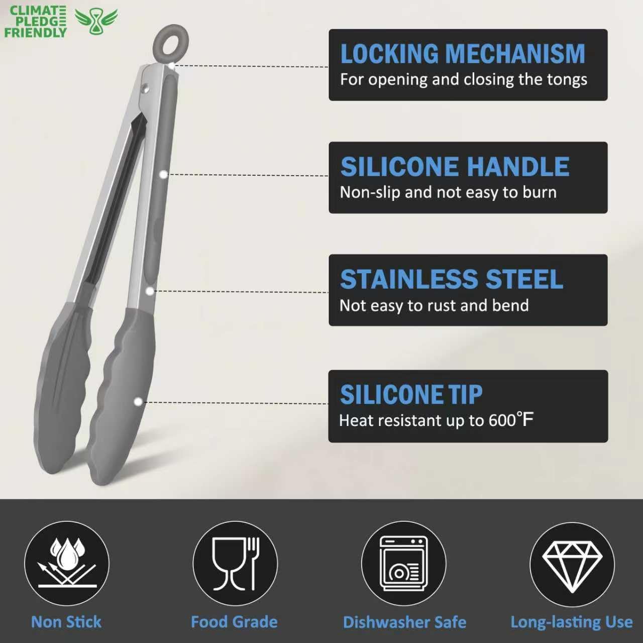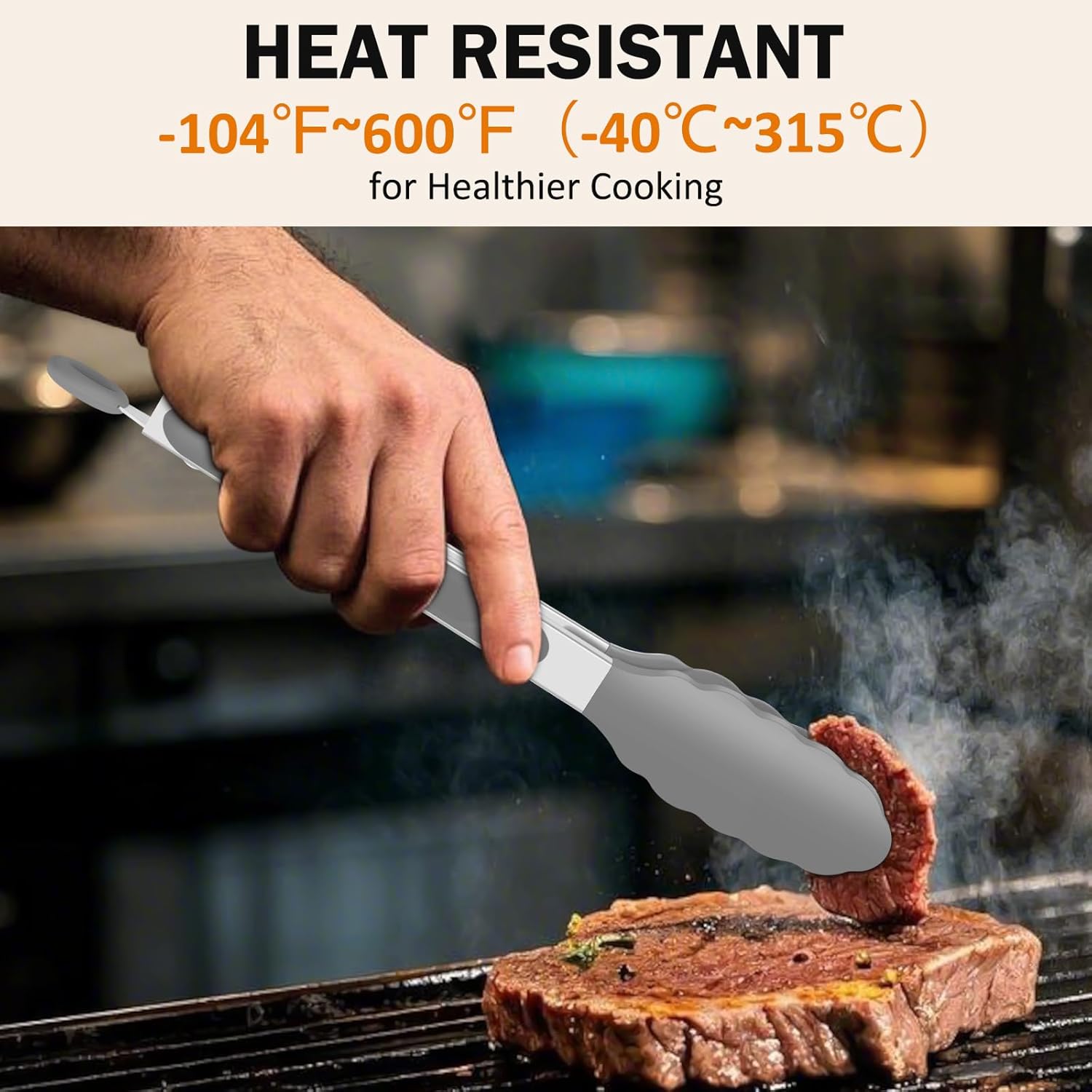 • 600ºF High Heat-Resistant: The silicone tongs feature BPA free silicone tip that will not scratch your nonstick cookware. Scalloped edges securely hold food. EEKEDO Tongs are great for frying, grilling, stirring, and serving. Non-stick surface easy to rinse, dishwasher safe.