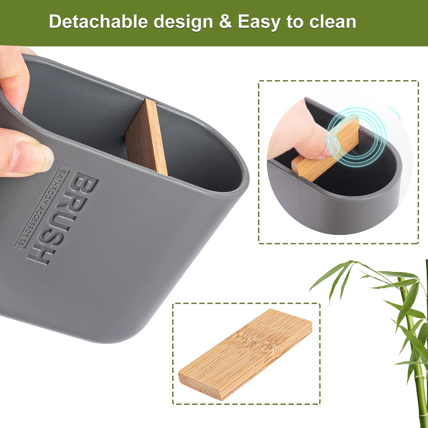 Toothbrush Holders Bamboo Electric Toothbrush Holder Bathroom Storage Organizer Countertop for Toothpaste, Floss, Razor, Grey