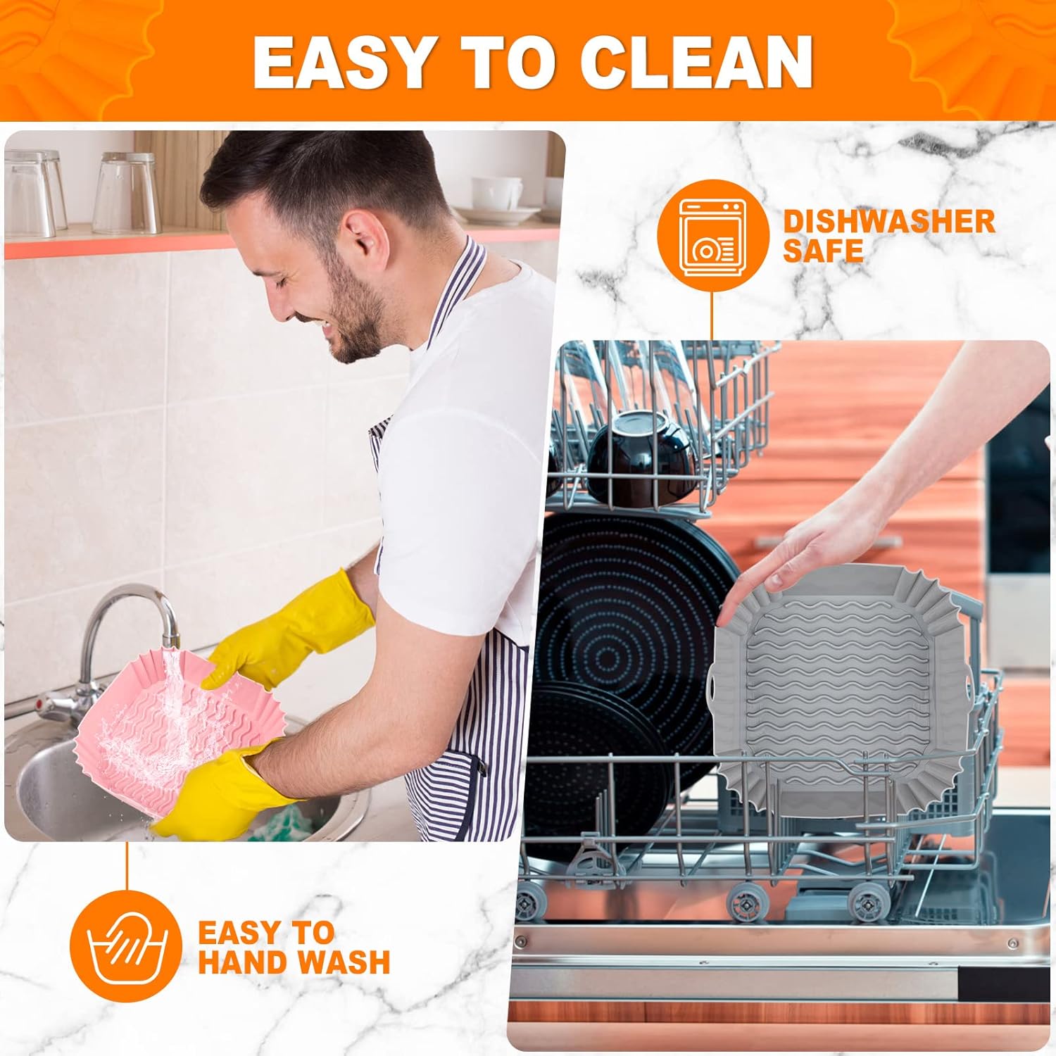 - [Non-Stick & Easy to Clean] Keeps your air fryer free from food residue, grease, Completely dishwasher safe, Allowing you to avoid the trouble of hand washing. Say goodbye to sticky and burned residue.