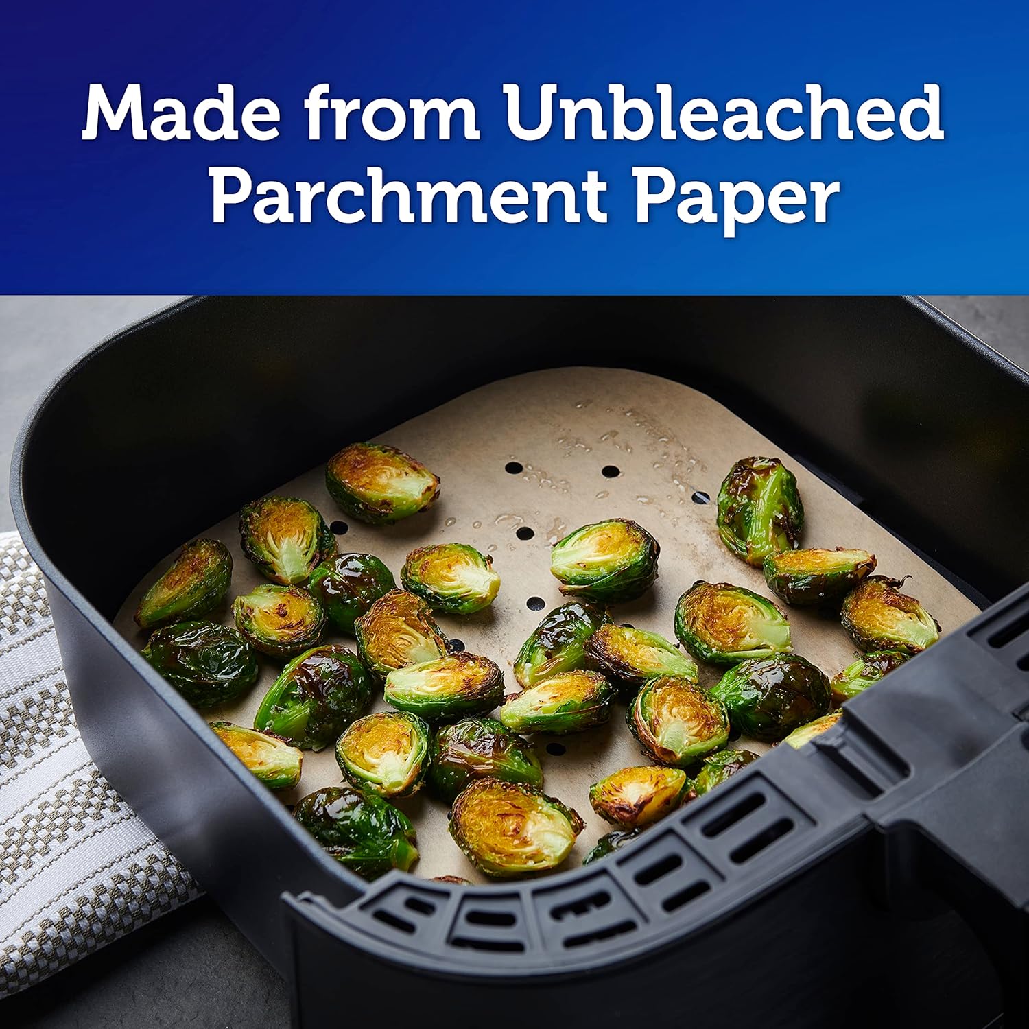 Reynolds Kitchens Air Fryer Liners Disposable, Unbleached Parchment Paper Sheets, 50 Count